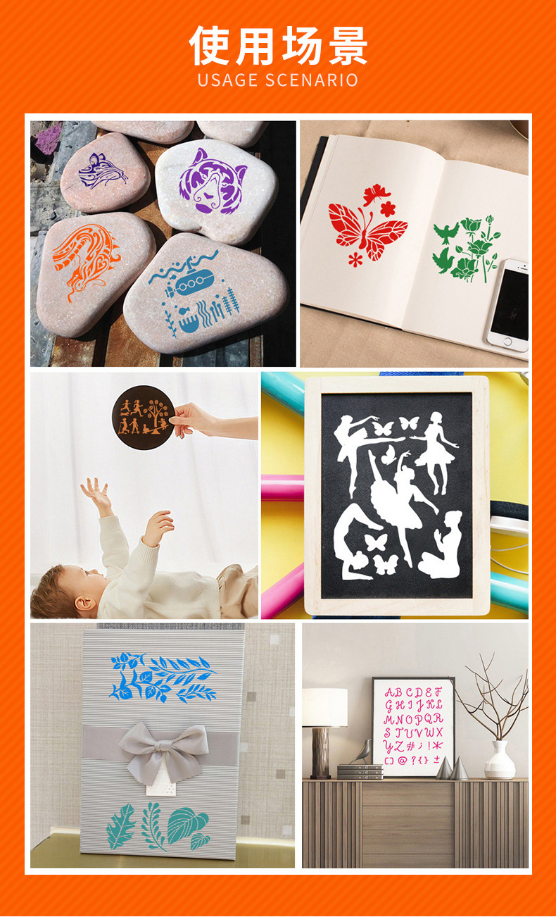 用途:相册手帐DIY、手报制作、儿童学生绘画模板,喷绘模板