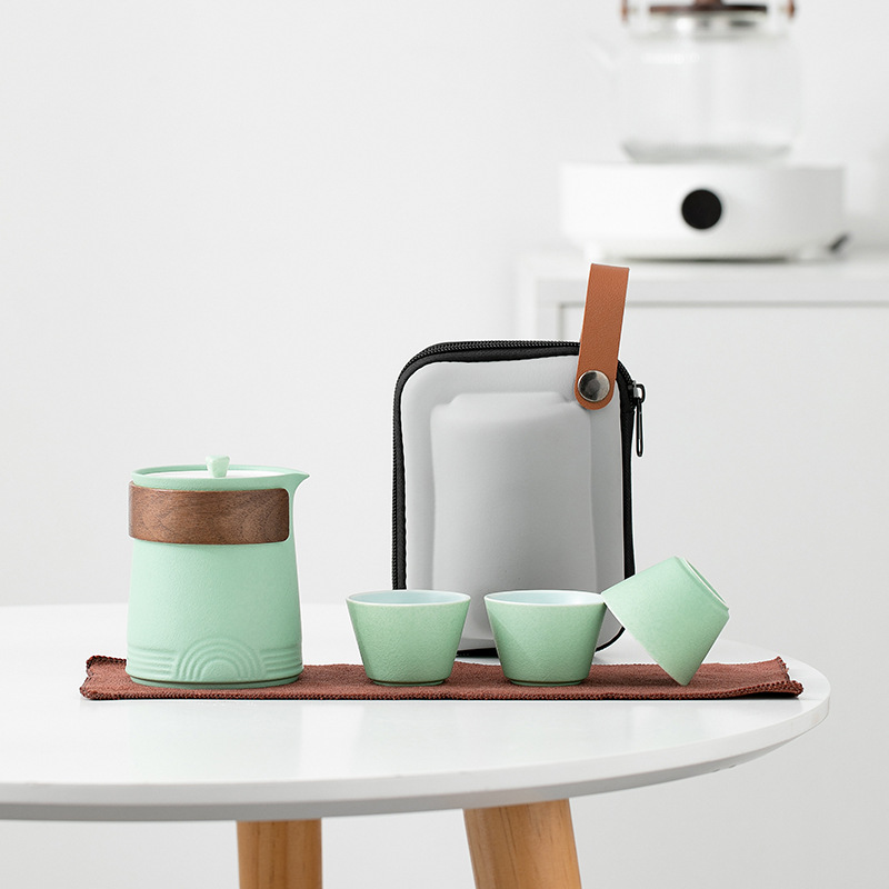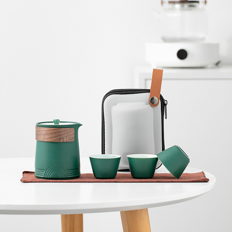 휴대용 여행 차 세트 세트 휴대용 야외 가방 주전자 찻잔 간단한 단일 빠른 컵 세 컵의 냄비스토어 가기