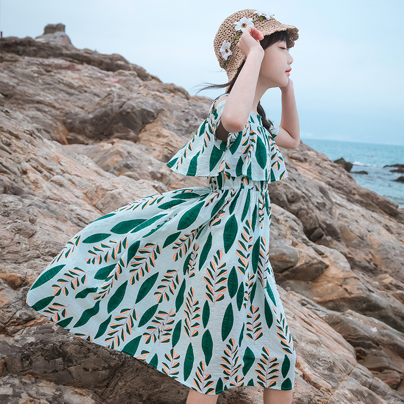 여자 비치 스커트 해변 휴가 2025 여름 새로운 스타일 슈퍼 서양식 여자 스커트 중대형 어린이 드레스 3238