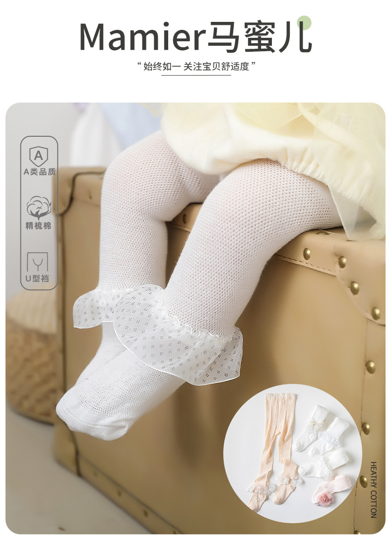 107 어린이 여름 소녀 공주 스타일 에어컨 룸 메쉬 레이스 아기 얇은 통기성 보투 팬티 스타킹