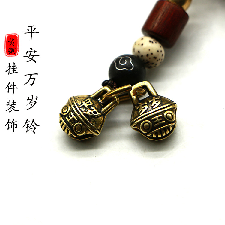 단단한 황동 년 된 핑 순수한 구리 타이거 벨 어린이 백세기 황동 벨 키 체인 펜던트