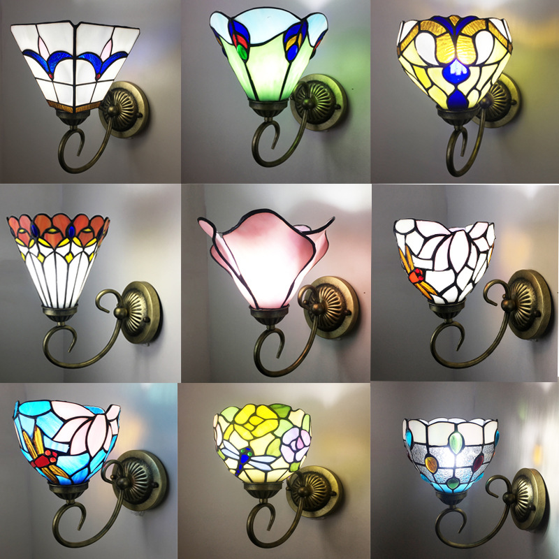 Baohua Tiffany 현대 간단한 컬러 벽 램프 침실 침대 옆 램프 통로 유럽 거실 배경 벽 램프