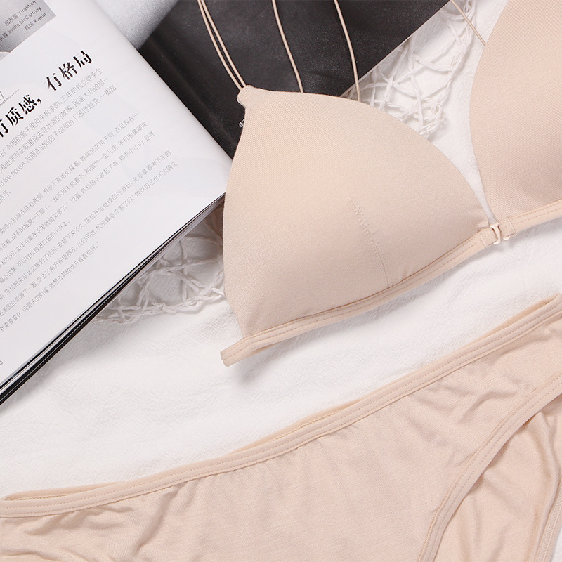 프랑스 유럽과 미국 뒤 속옷 앞 버클 브래지어 매칭 트라이앵글 컵 여아 학생 레이온 여성용 편안한 브리프