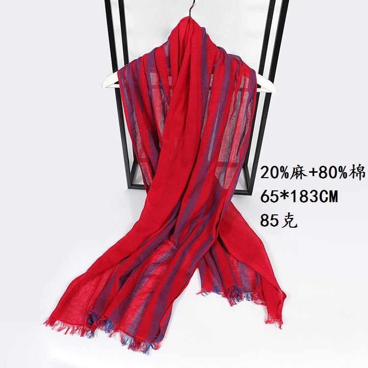 Ruifeng 봄과 여름면 및 린넨 혼합 통기성 그라데이션 일반 스트라이프 코드와 린넨 스카프 목도리 새로운 공장 배달스토어 가기