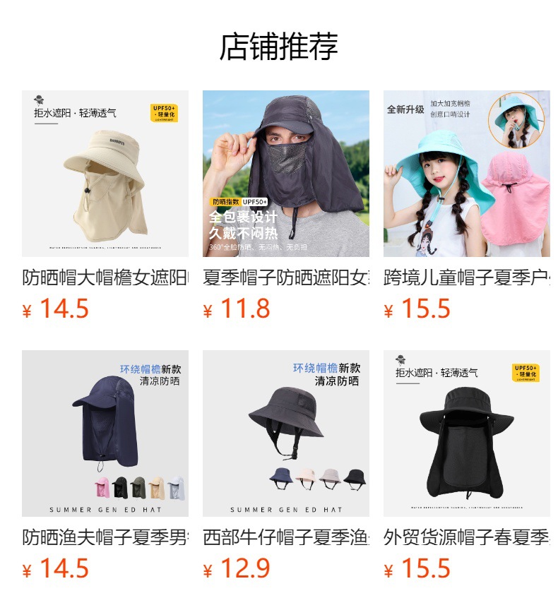챙이 큰 낚시 및 등산 모자, 자외선 차단 모자, 여름 크로스보더 야외 망토 모자, 아마존 인기 태양 모자스토어 가기