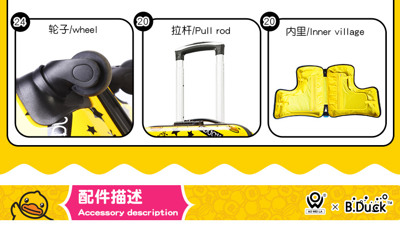 공장 맞춤형 승마 트롤리 케이스 어린이 가방 승마 작은 노란색 오리 가방 B.Duck 탑승 케이스