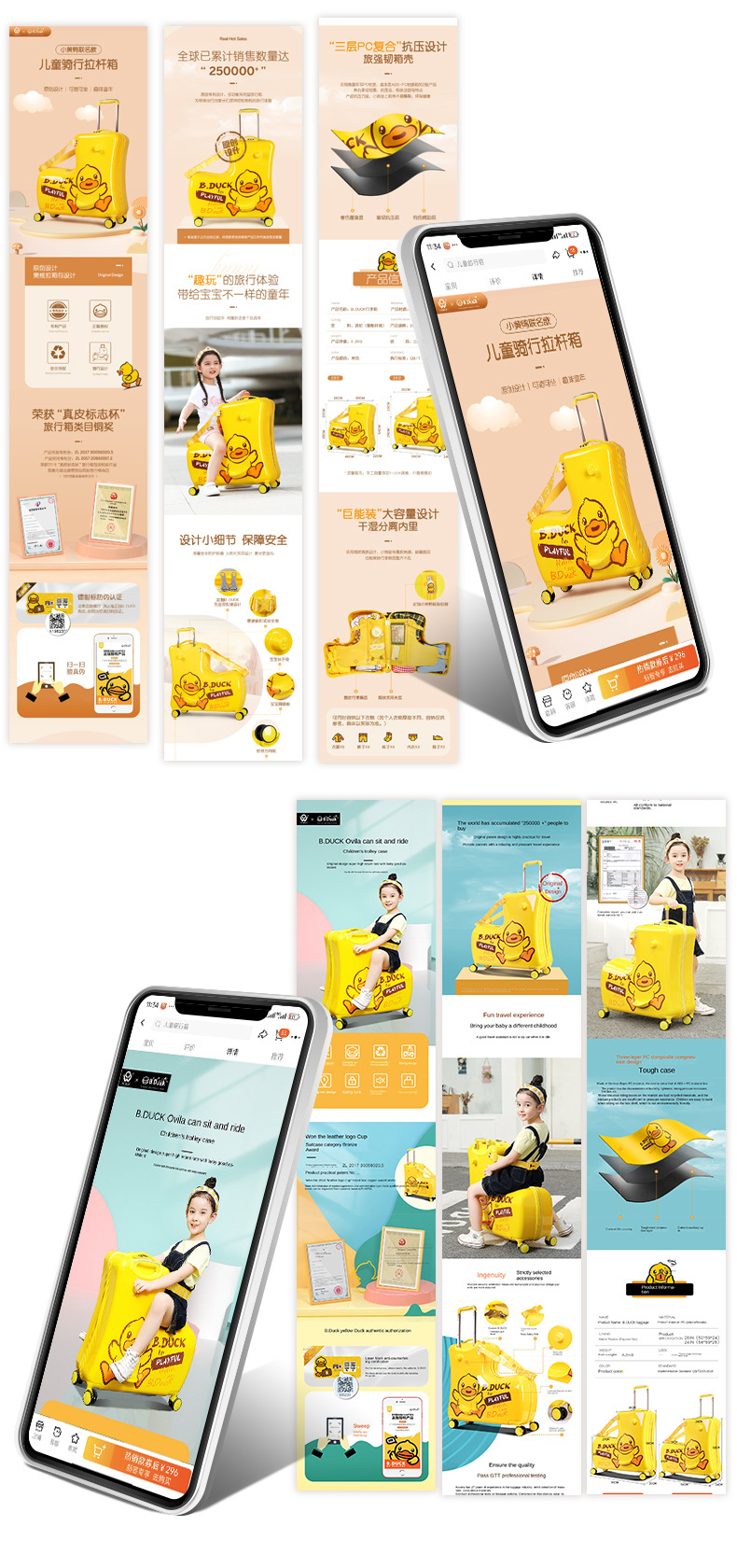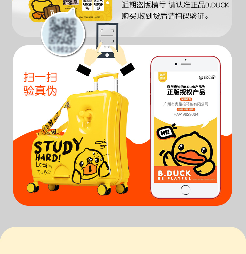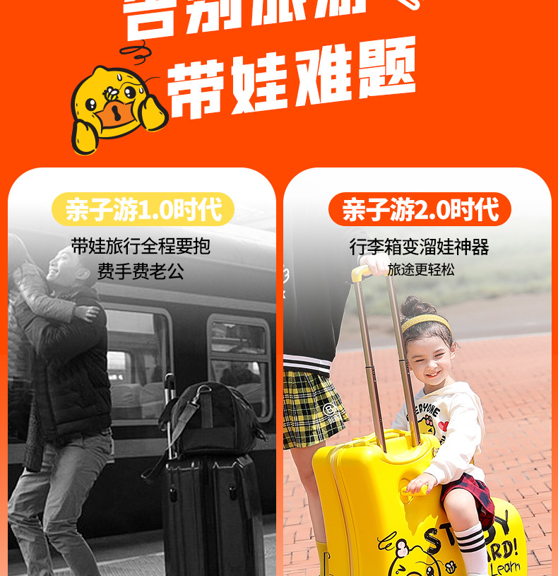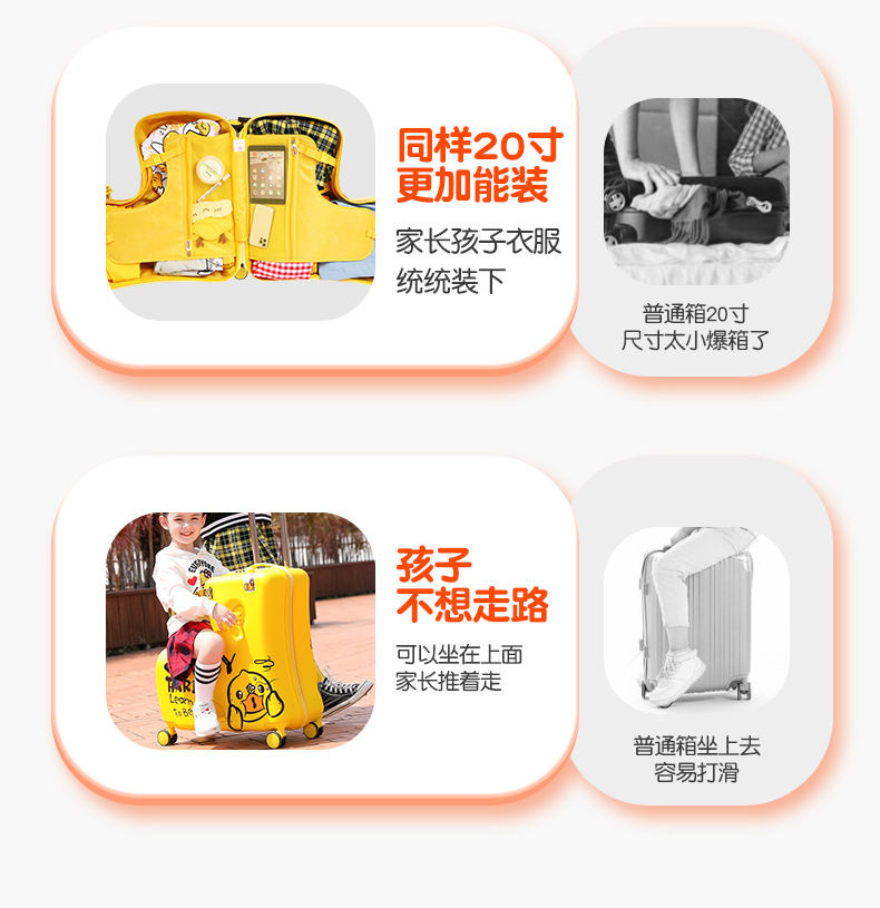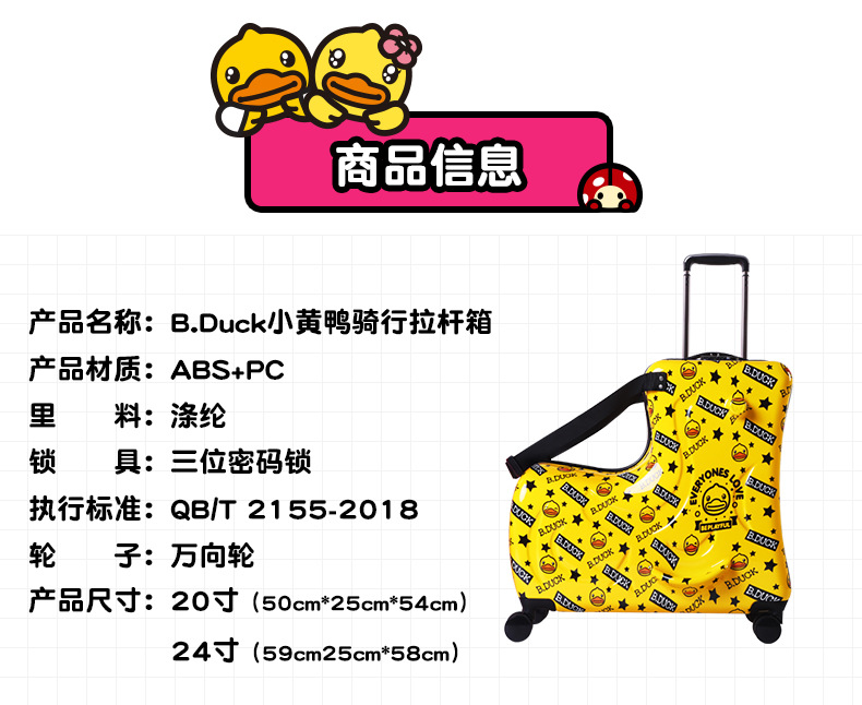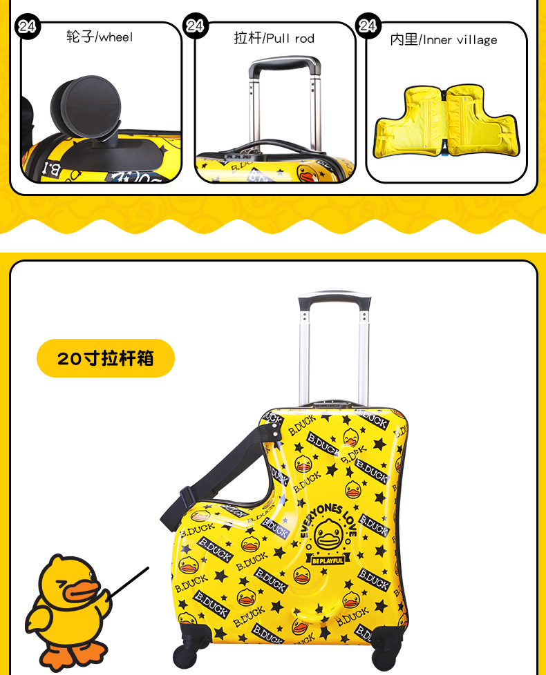 공장 맞춤형 승마 트롤리 케이스 어린이 가방 승마 작은 노란색 오리 가방 B.Duck 탑승 케이스스토어 가기