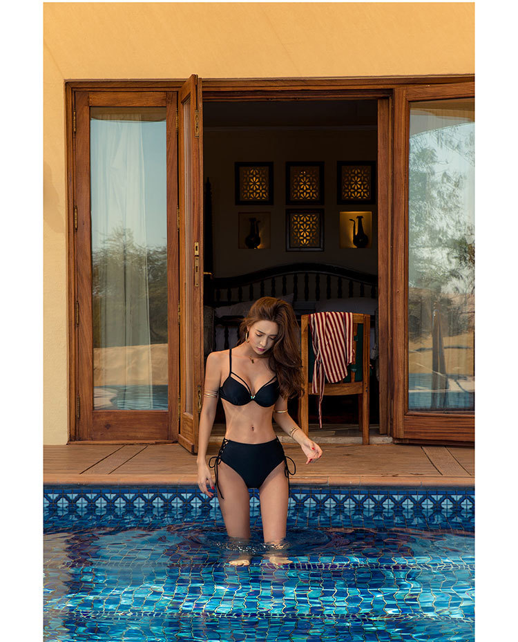 Ins 레트로 비키니 섹시 개더 딥 V 하이 웨이스트 슬리밍 온천 수영복 여성용 단색 간단한 유럽과 미국 비키니