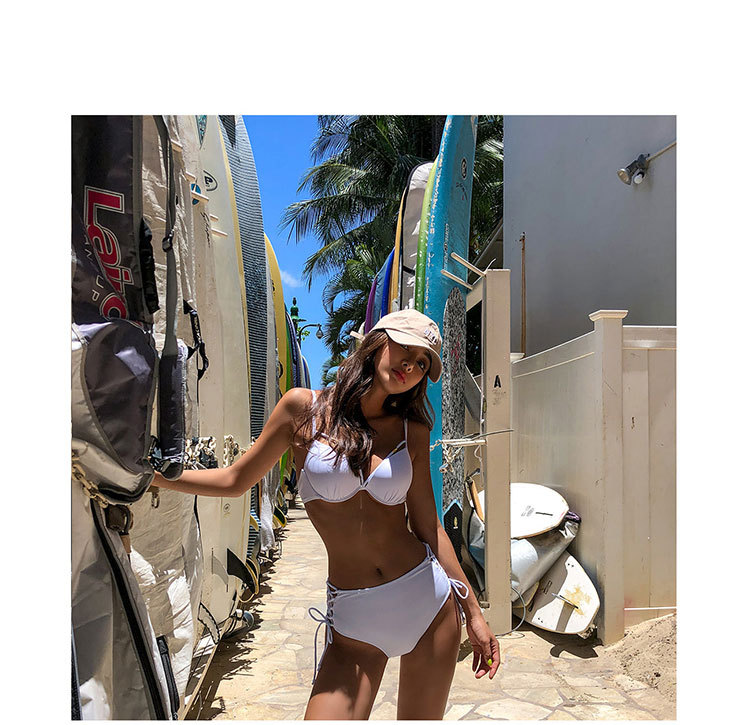 Ins 레트로 비키니 섹시 개더 딥 V 하이 웨이스트 슬리밍 온천 수영복 여성용 단색 간단한 유럽과 미국 비키니스토어 가기