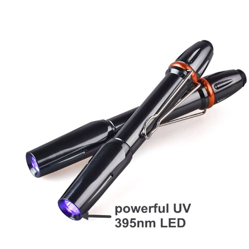 국경 395 보라색 빛 돈 탐지기 손전등 미니 휴대용 펜 홀더 led 슈퍼 밝은 야외 손전등 AAA 배터리 대외 무역