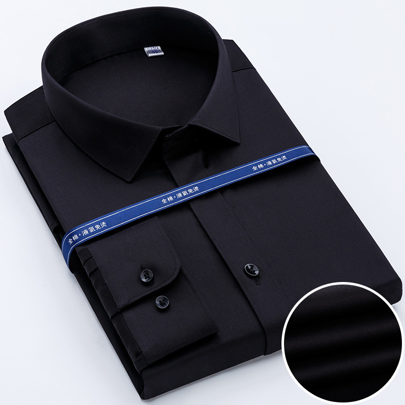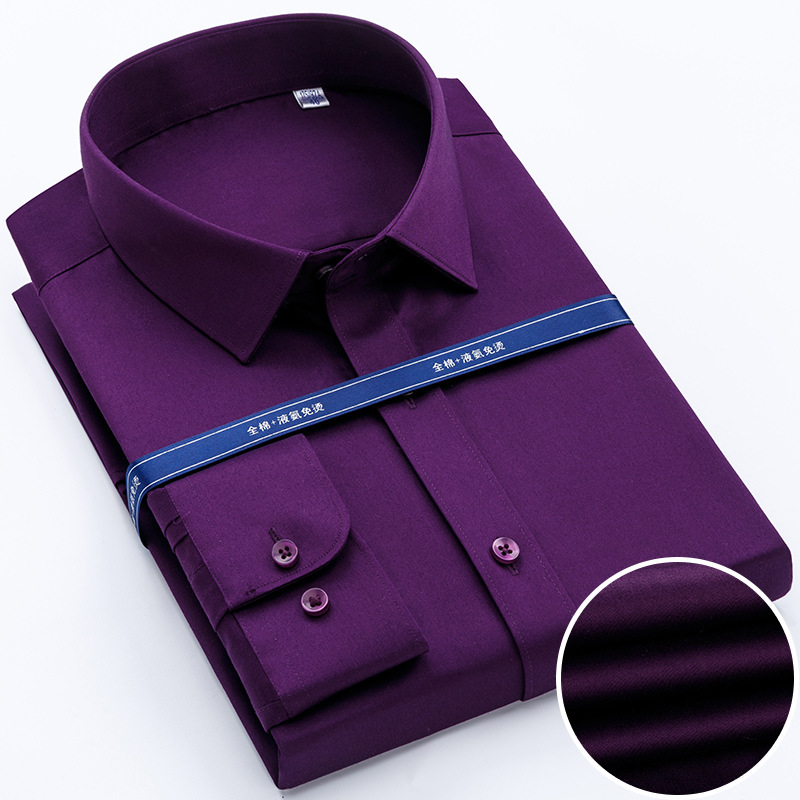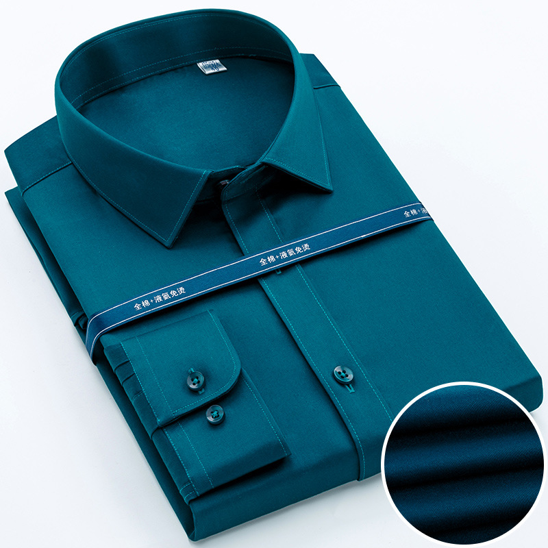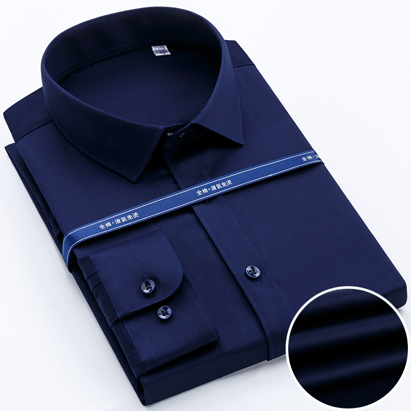 봄 남자 셔츠 남성용 긴팔 중년 순면 셔츠 순면 머서라이징 면 다림질 없는 고급 비즈니스 원피스스토어 가기