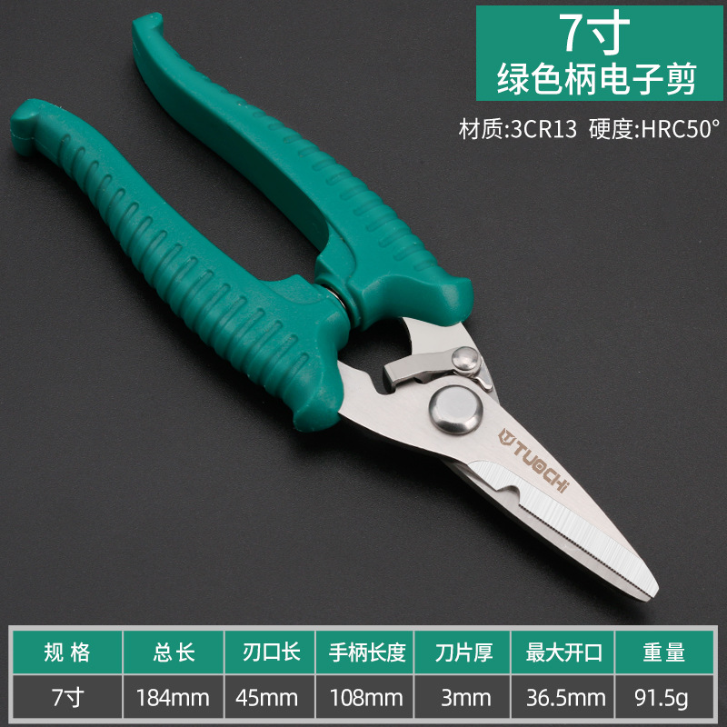 • 7 인치 녹색 손잡이 전자 가위