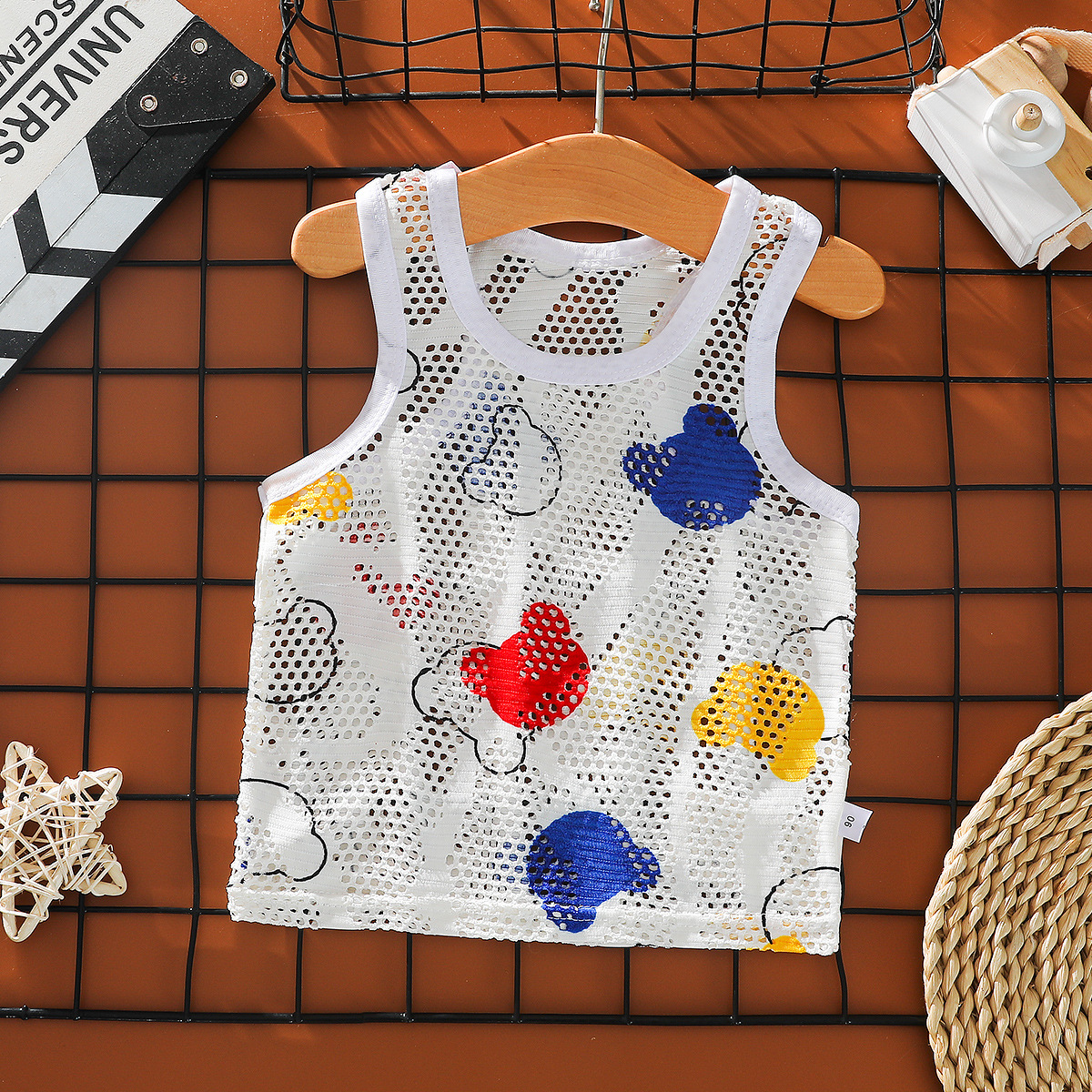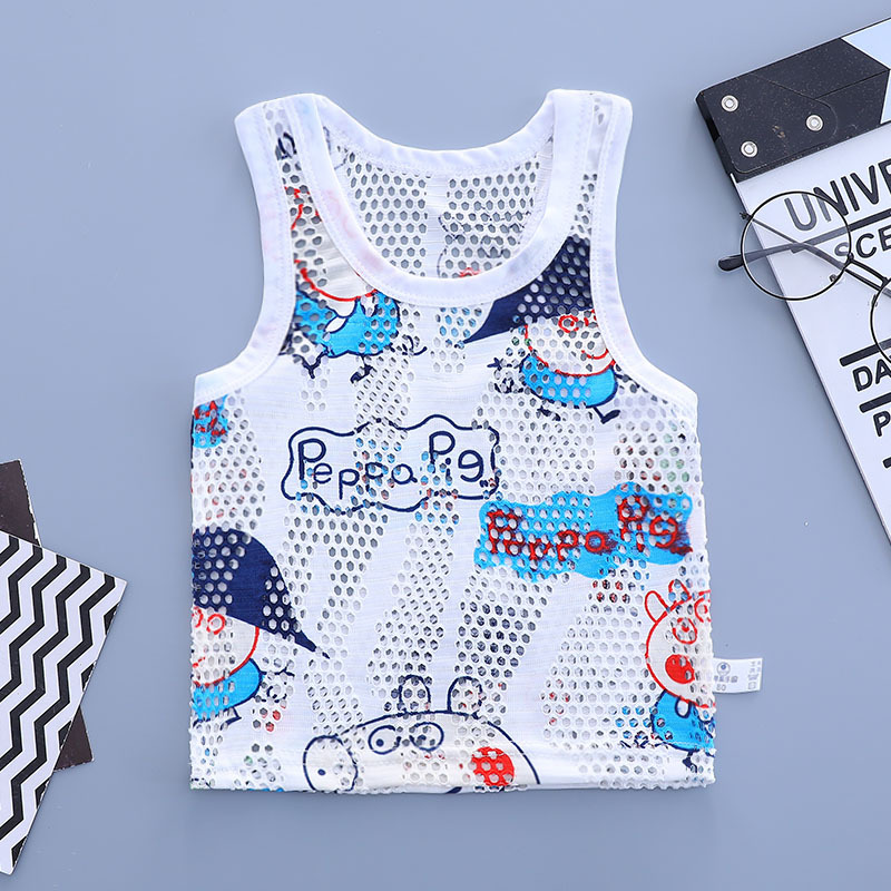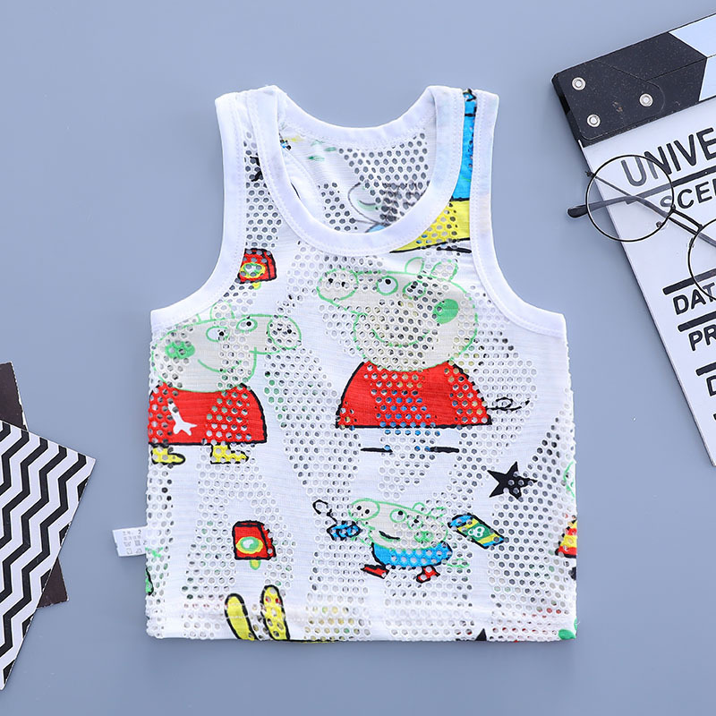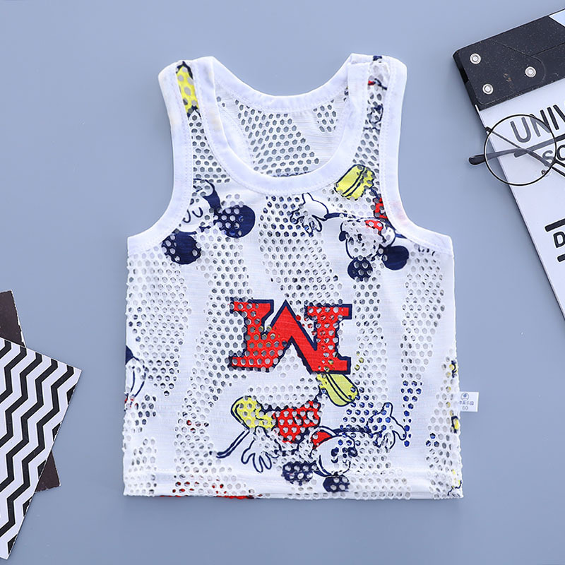 어린이 중공 여름 조끼 초박형 소년 메쉬 민소매 탑 어린이 동굴 캐주얼 통기성 만화 스웨터