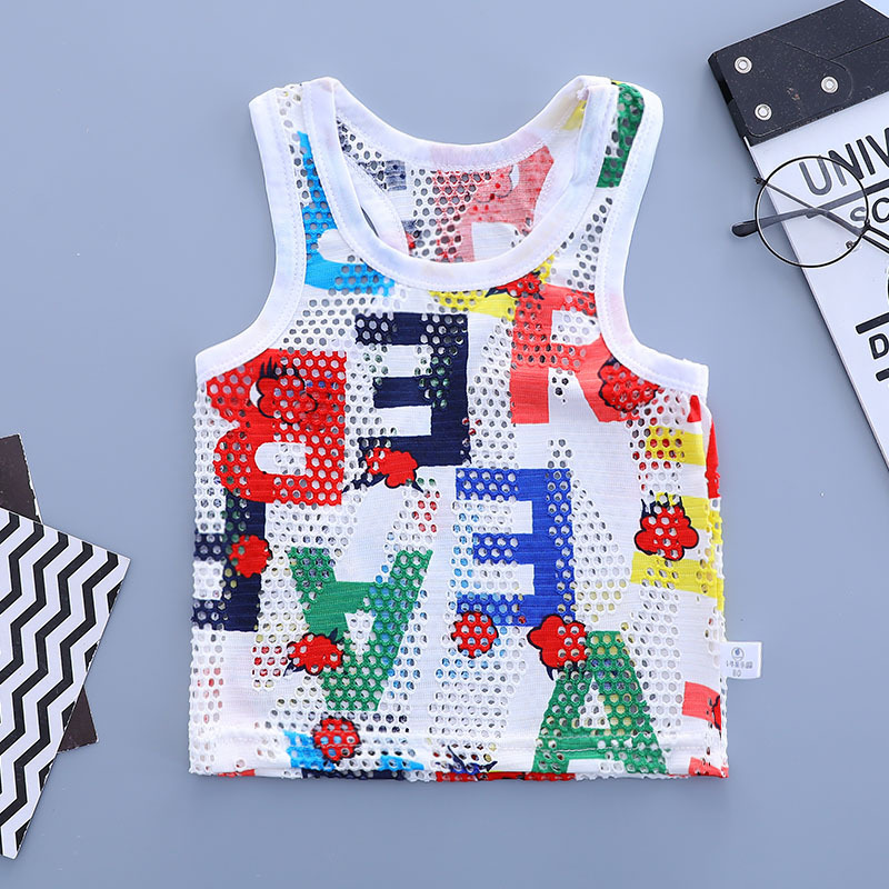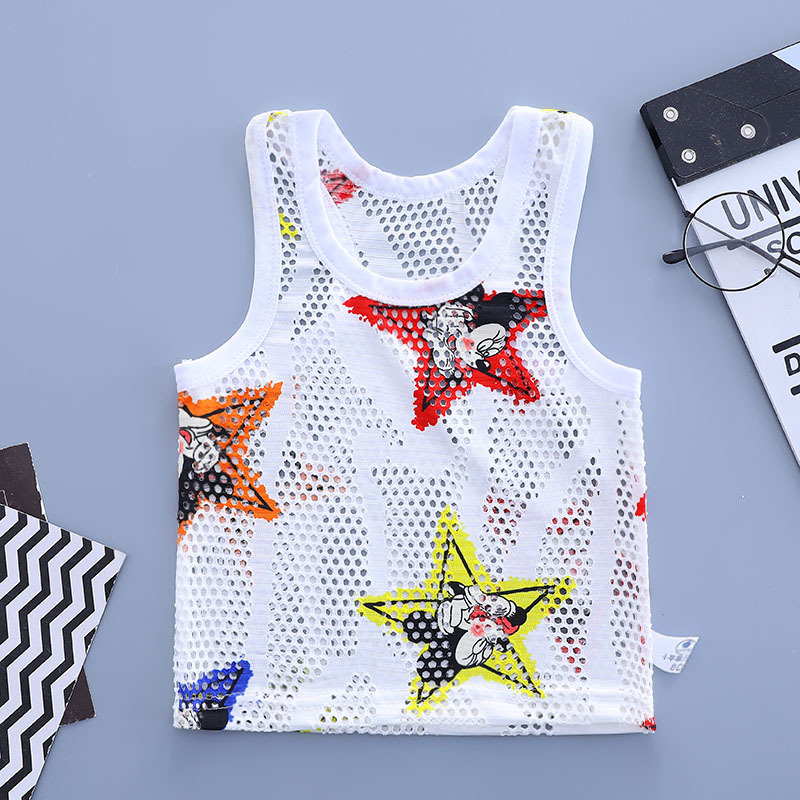 어린이 중공 여름 조끼 초박형 소년 메쉬 민소매 탑 어린이 동굴 캐주얼 통기성 만화 스웨터스토어 가기