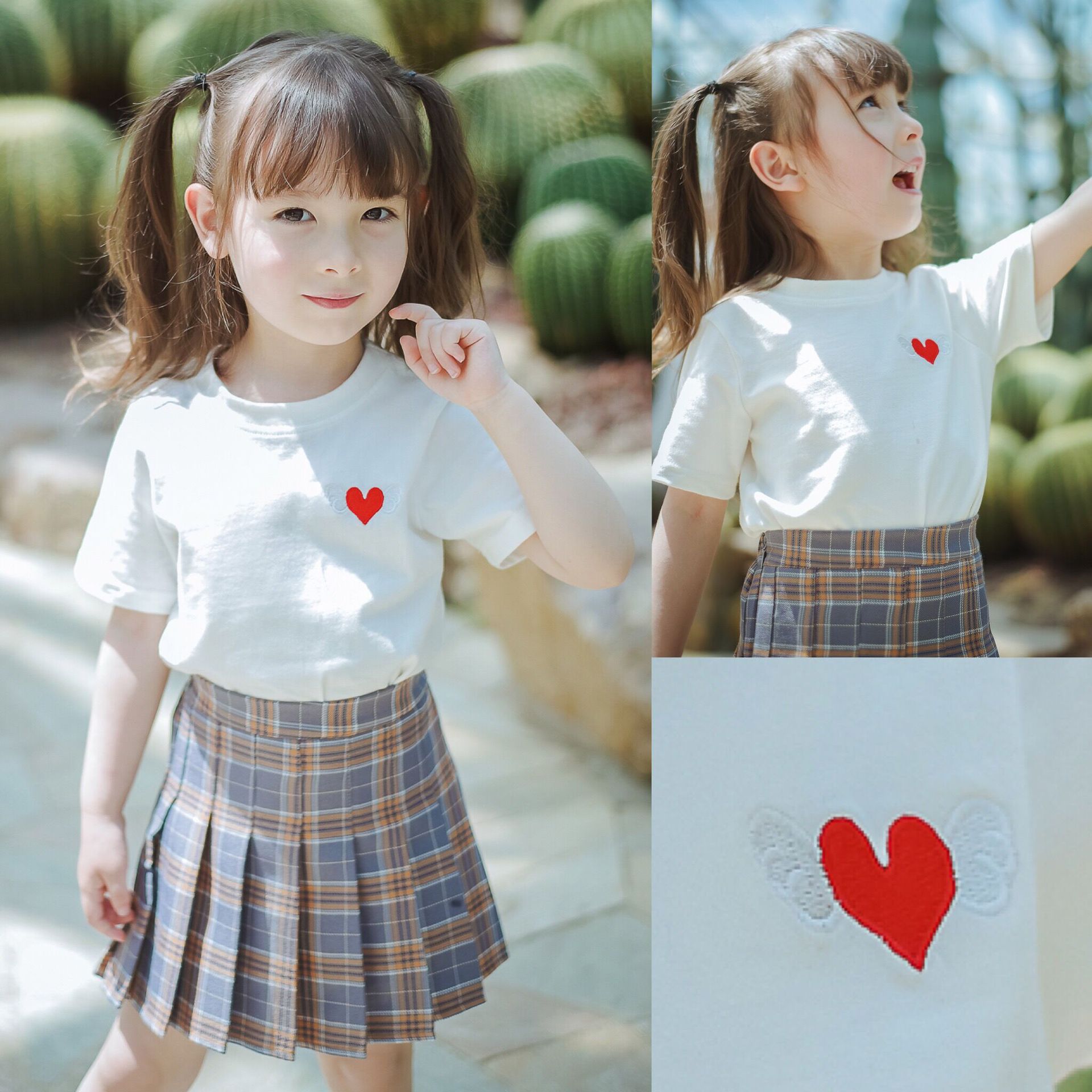 여름 새로운 사랑 자수 느슨한 성능 형제 자매 캠퍼스 순면 흰색 소녀를위한 반팔 티셔츠스토어 가기