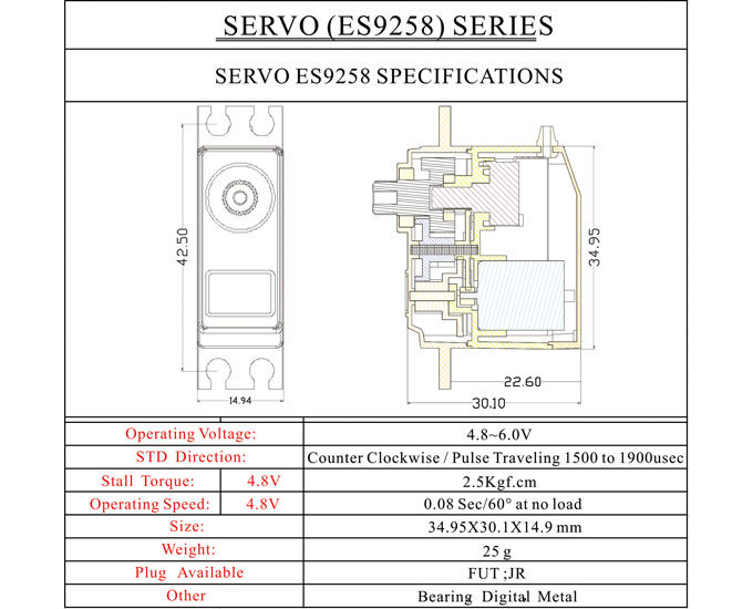 인기있는 원격 제어 모델 항공기 액세서리 Yinyan 450 헬리콥터 ES9258 금속 디지털 잠금 테일 스티어링 기어