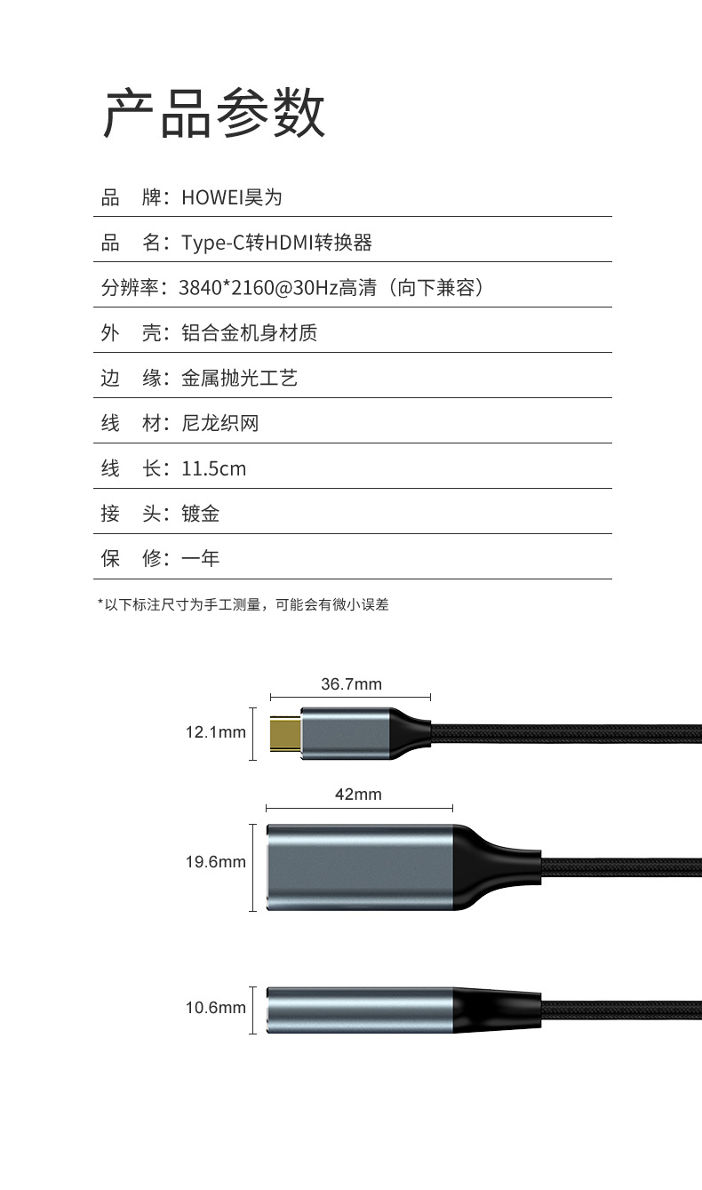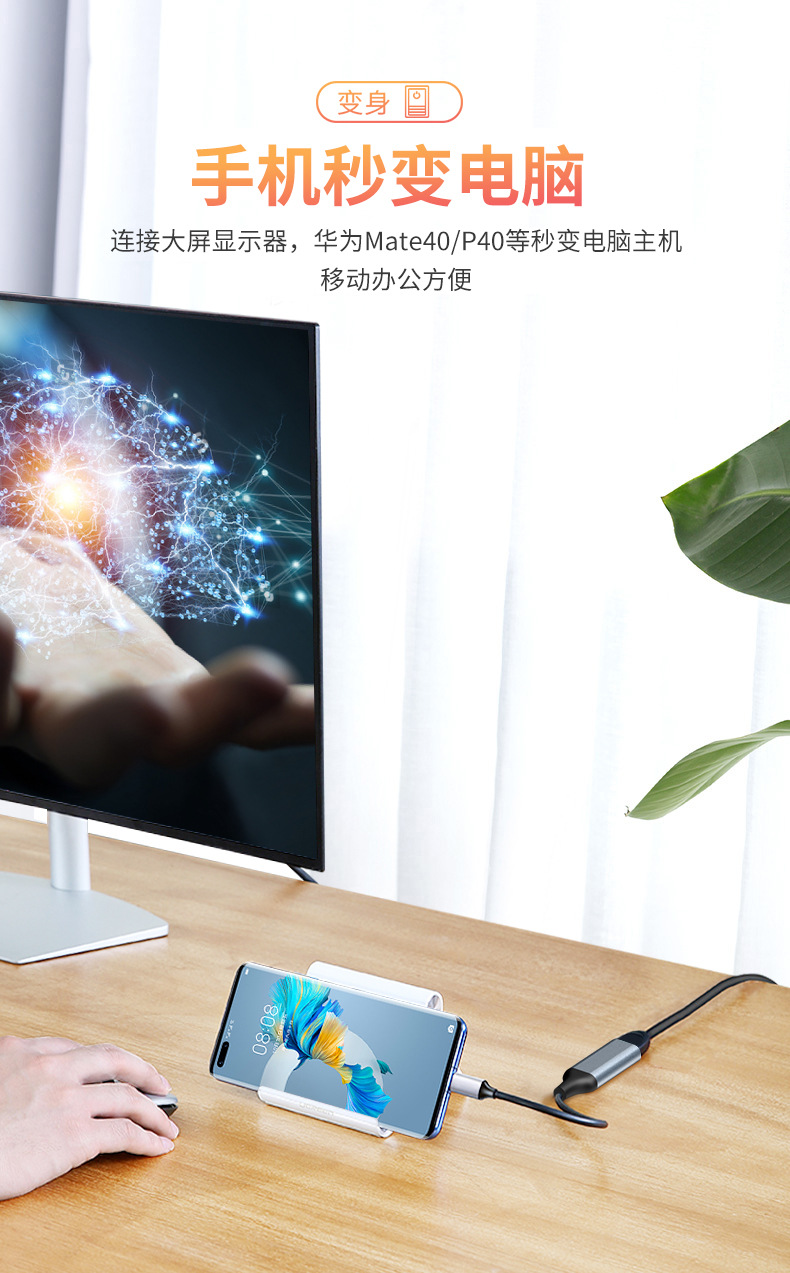 크로스 보더 유형-c에서 hdmi 어댑터 4K 노트북 변환기 화면 프로젝터 휴대 전화 유선 화면 변환기