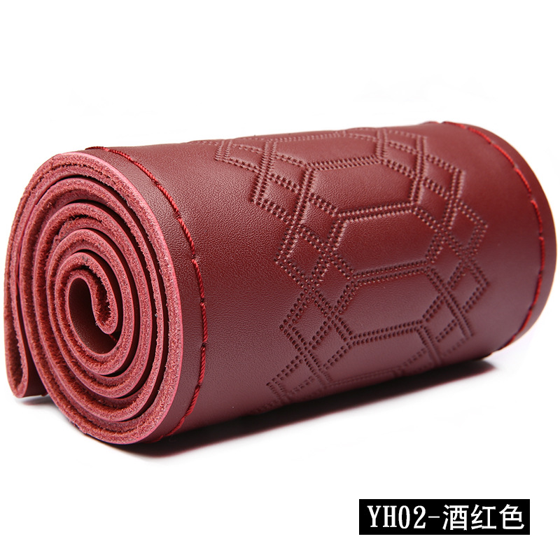 진짜 소 가죽 패션 양각 핸드 스티치 스티어링 휠 커버 사계절 적용 가능한 자동차 핸들 커버 yk02