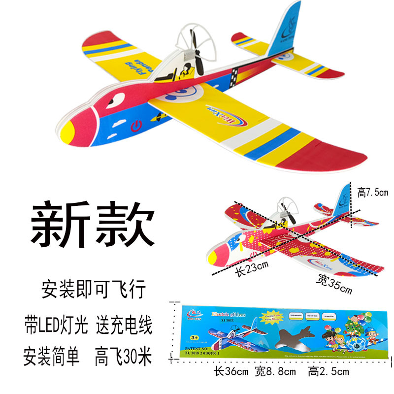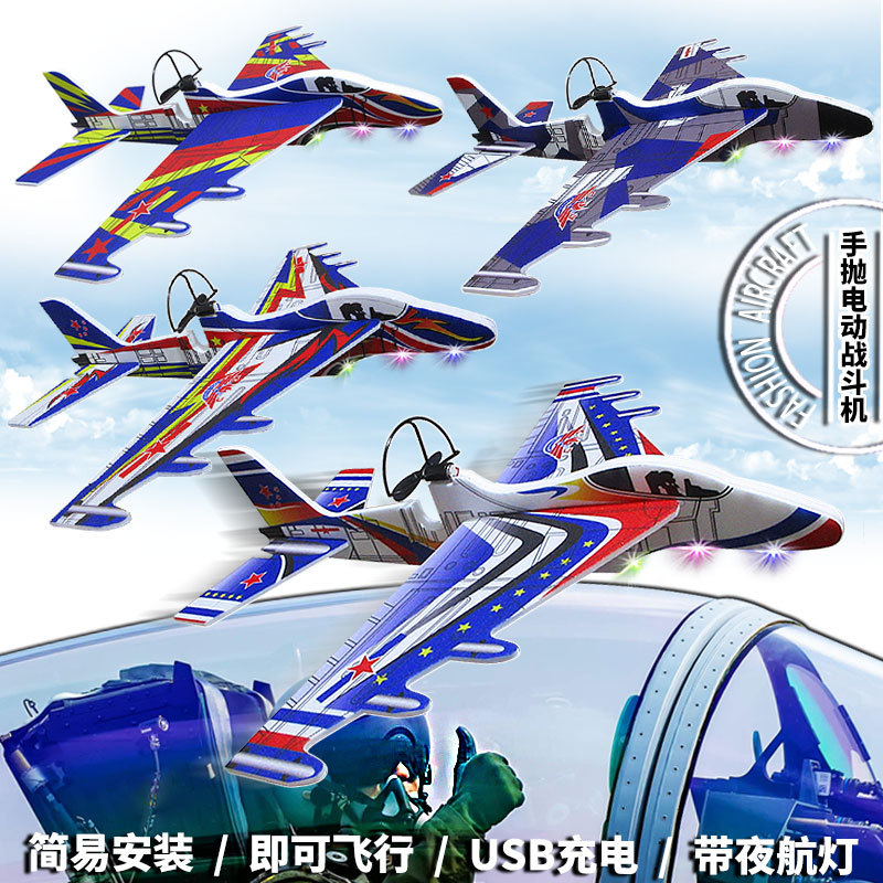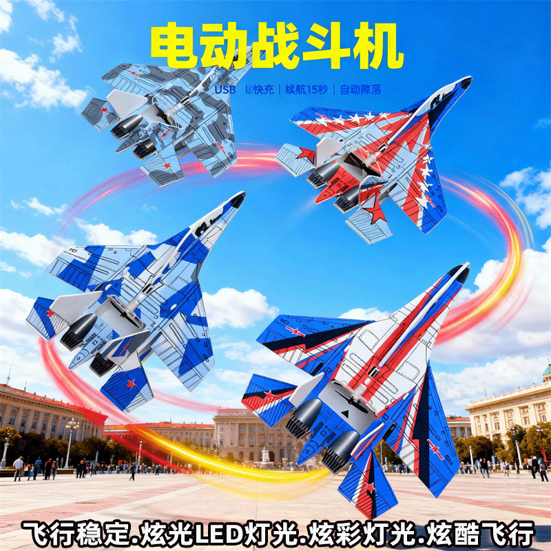 거품 전기 항공기 Su 27 전투기 Bipplane 전기 야간 조명 충전 전기 글라이더 낙하 방지 모델 비행기스토어 가기