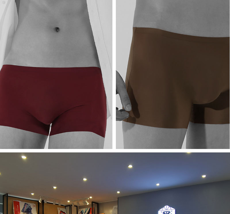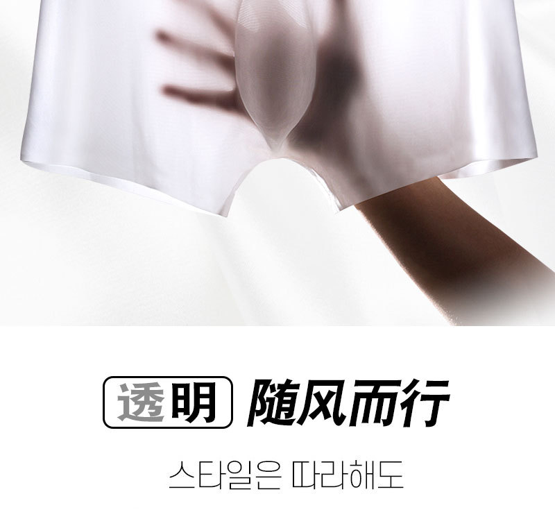 봄과 여름 남자의 아이스 실크 속옷 3d 다이 원피스 원활한 복서 바지 빛 투명 플러스 사이즈 패션 남자의 알몸 아이스 바지스토어 가기