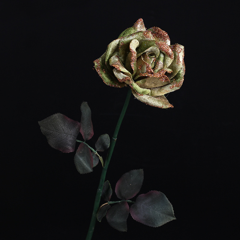 플란넬 골드 핑크 로즈 로즈 시뮬레이션 가짜 꽃 유럽 고급 대외 무역 결혼식 축제 홈 장식 꽃