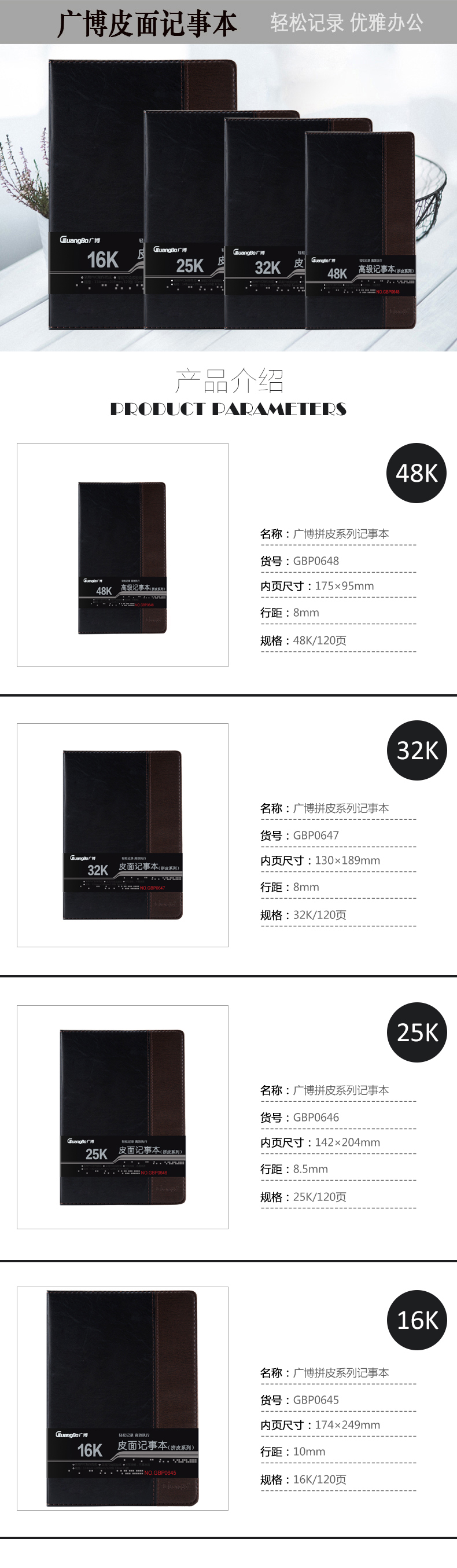 광보 학생 수첩 48K/32K/25K/16K 120 페이지 비즈니스 가죽 오피스 일기