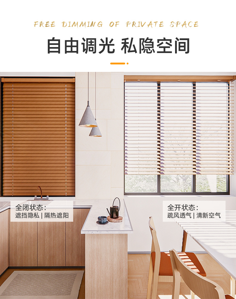 국경을 넘는 폼 모조 나무 블라인드 커튼, 사무실, 서재, 침실용 차광 원목 참피나무 블라인드 커튼 2inch