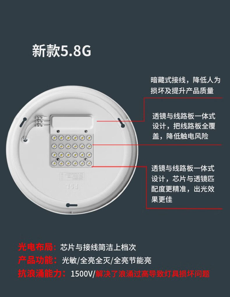 • 5.8g 새로 업그레이드 된 25W 마이크로파 유도 천장 램프