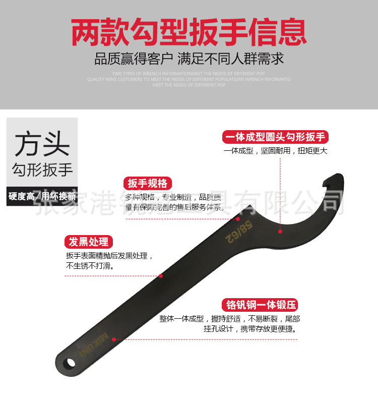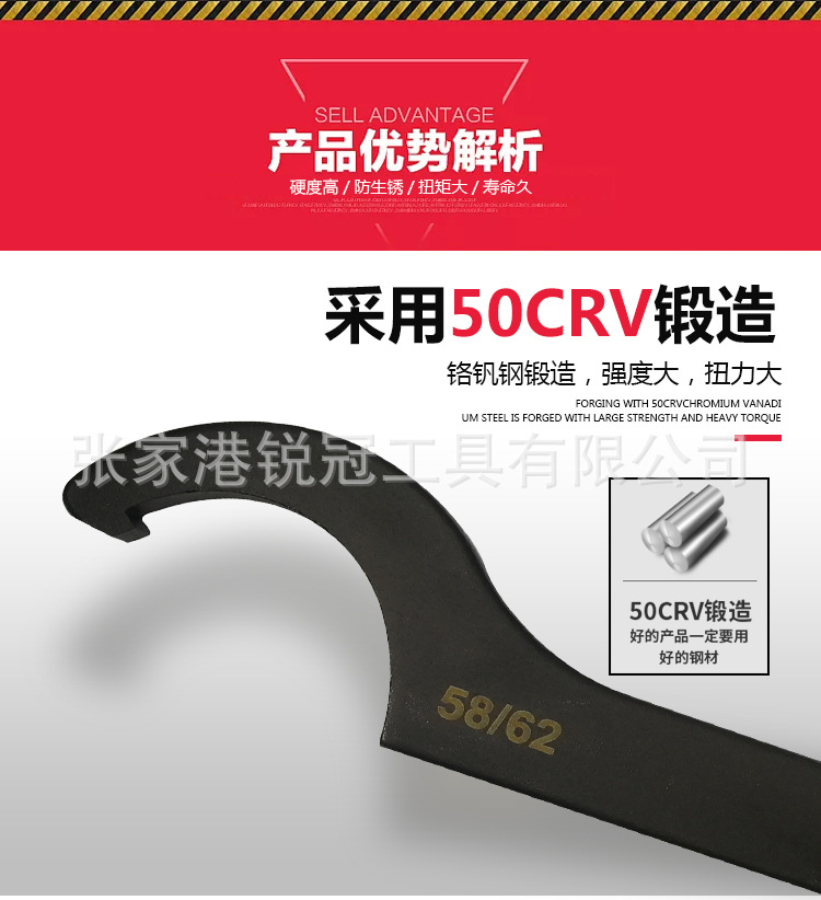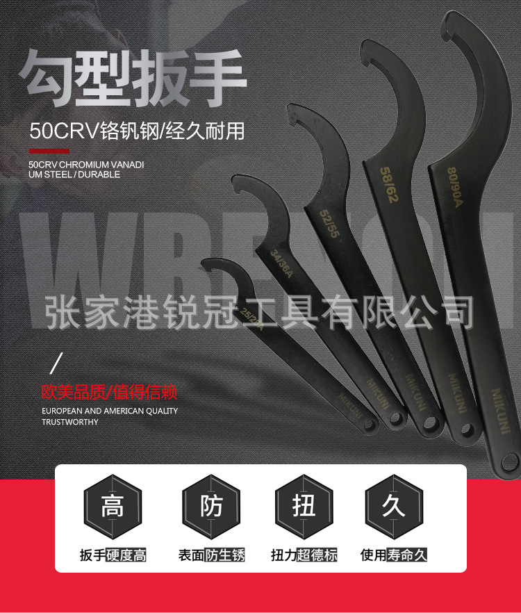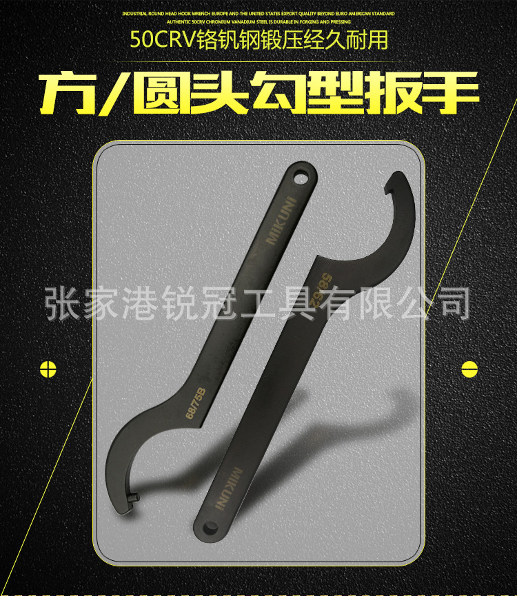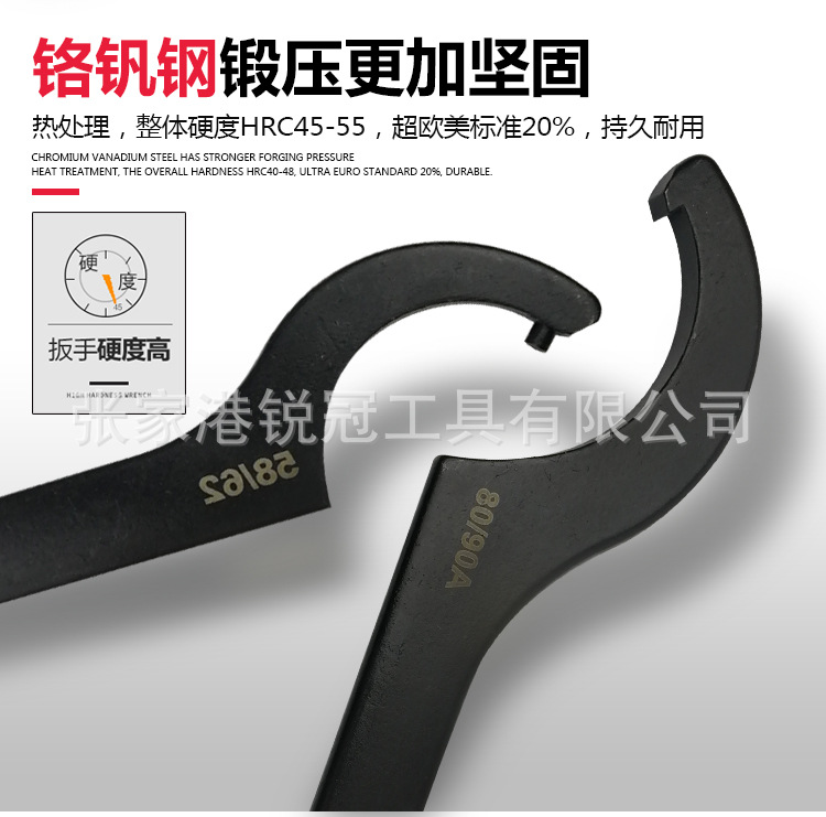 합금 크롬 바나듐 스틸 초승달 렌치 사각 헤드 후크 렌치 라운드 너트 후크 렌치 독일 DIN1810