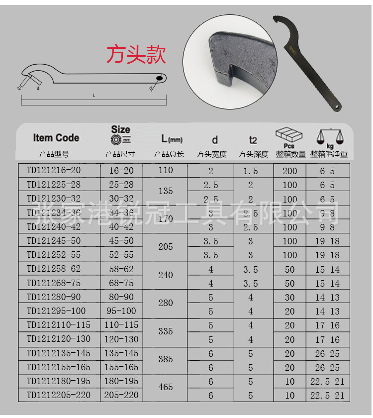 • 후크 렌치 205-220mm 사각 헤드