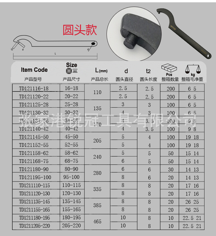 • 후크 렌치 110-115mm 라운드 헤드