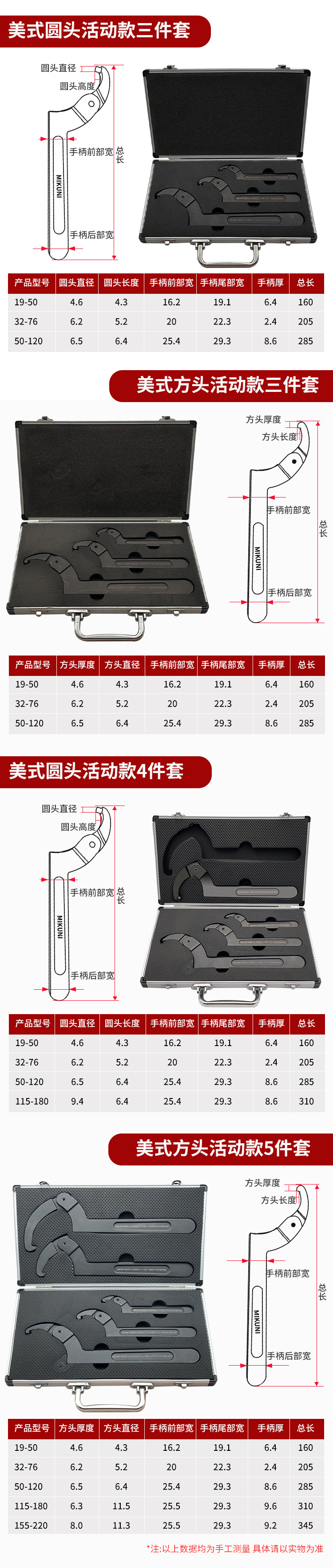 • 후크 렌치 180-195mm 라운드 헤드