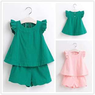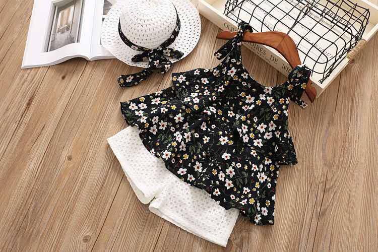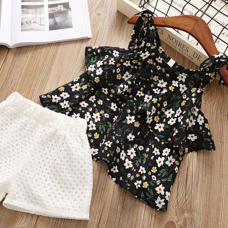 여아 쉬폰 세트 2023 새로운 여름 어린이 꽃 슬링 셔츠 반바지 아기 투피스 제조업체 판매스토어 가기
