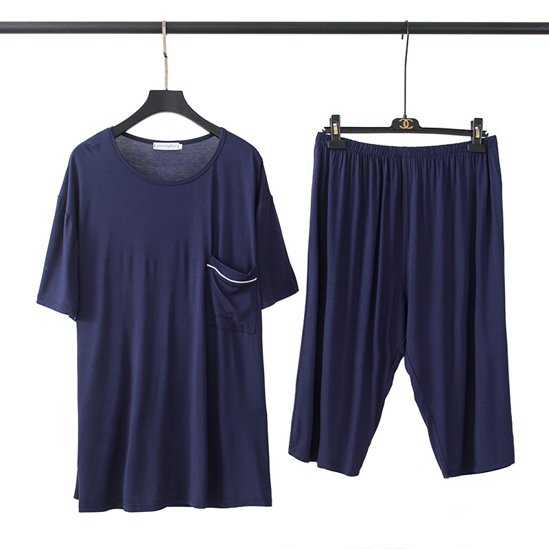 260kg 여름 남성 플러스 대형 짧은 소매 반바지 모달 파자마 느슨한 캐주얼 홈 착용 세트