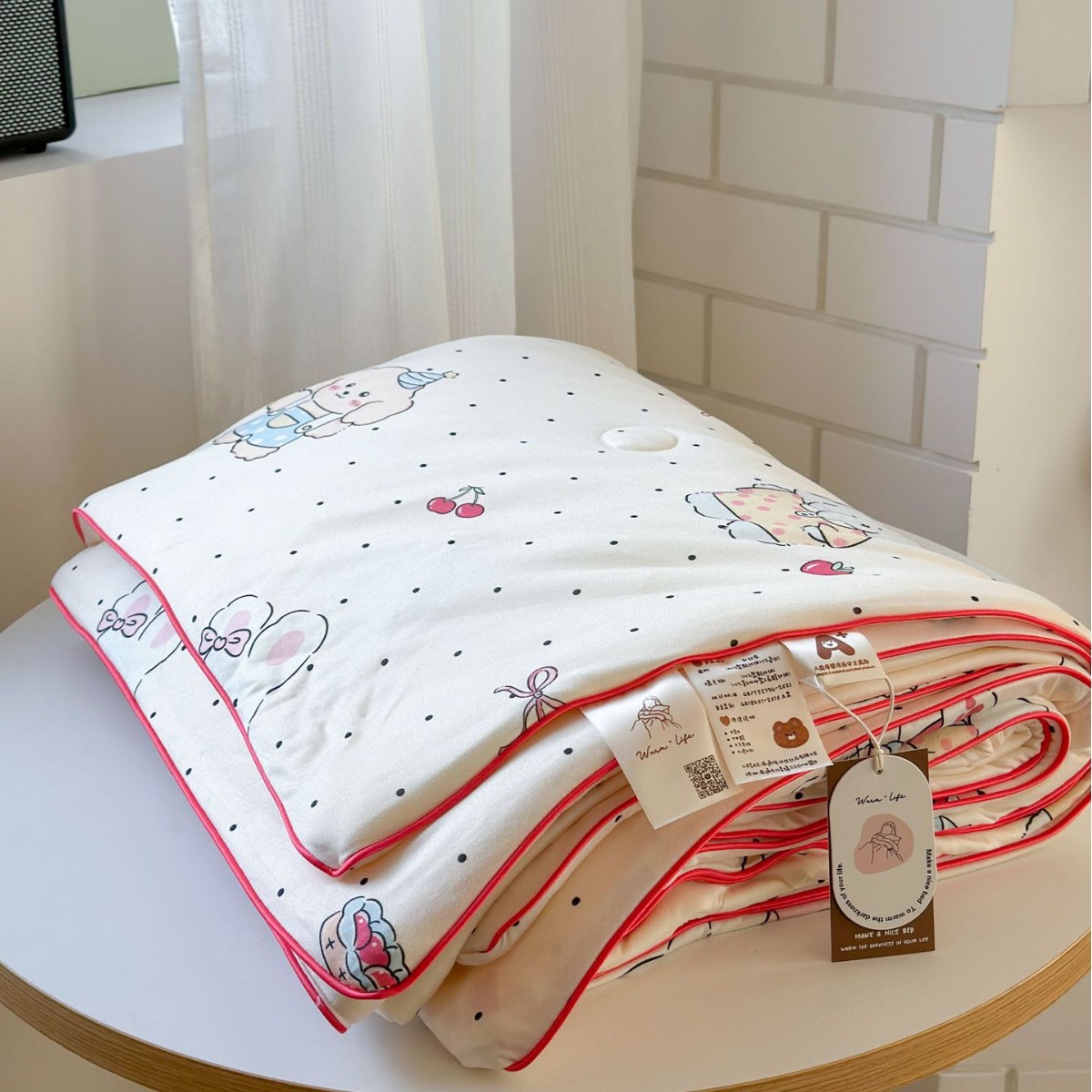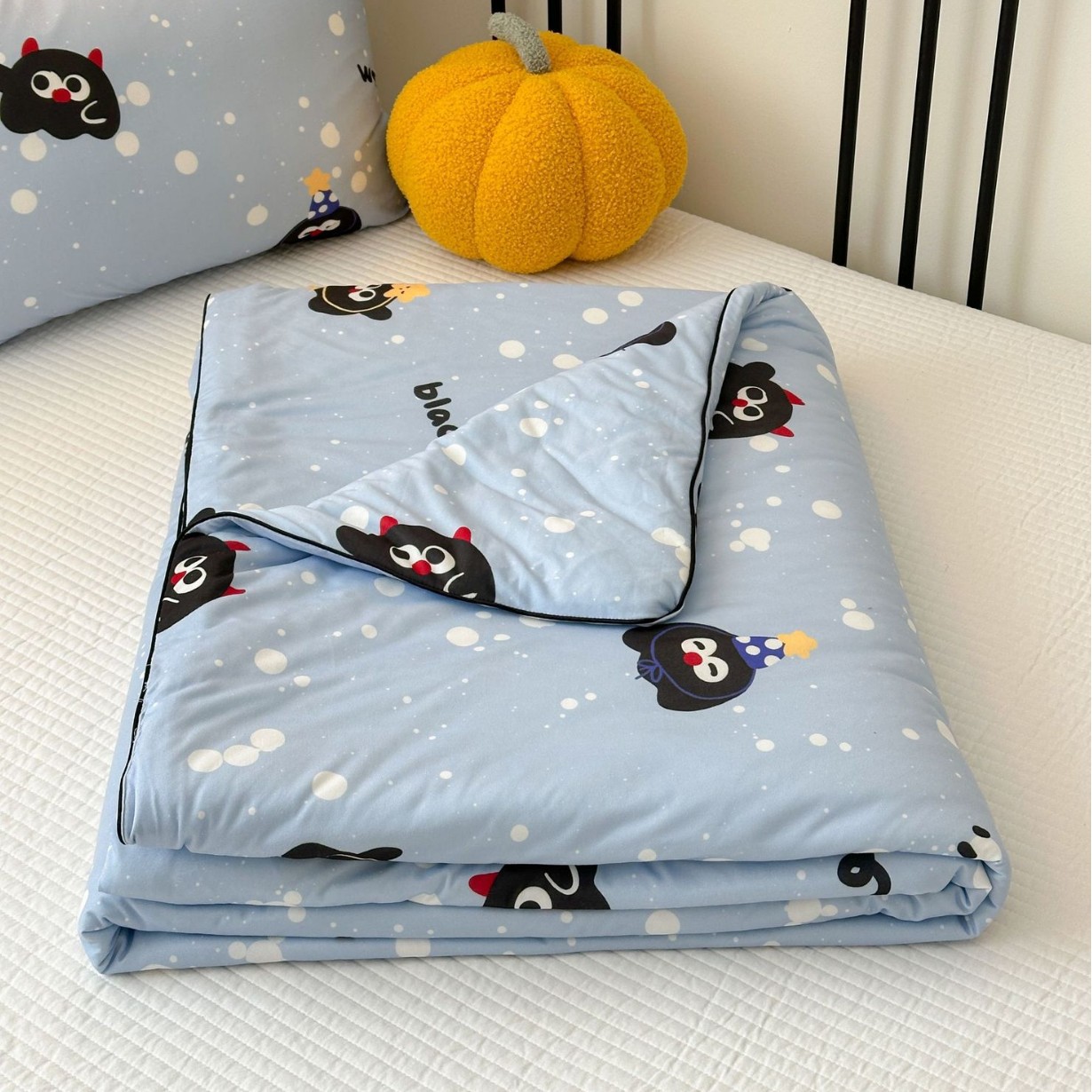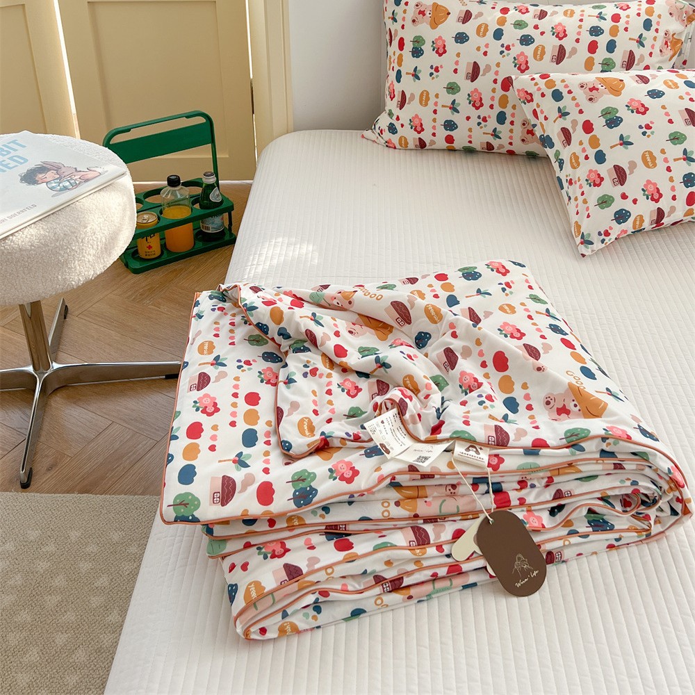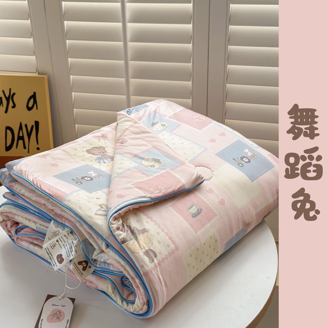 부드럽고 부드러운 데르 ~ 니트 클라우드 소프트 퀼트 작고 신선한 만화 프린팅 피부 친화적 소프트 누드 수면 여름 이불 에어컨 룸 얇은 이불스토어 가기