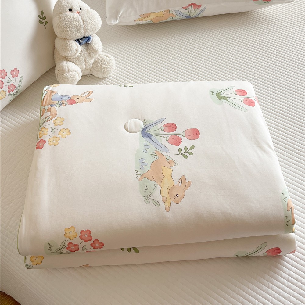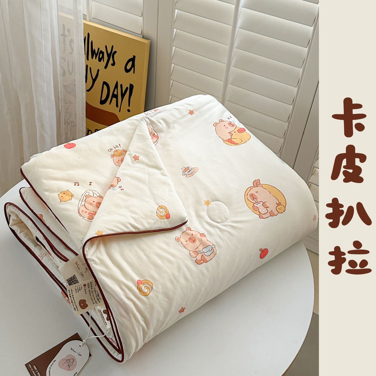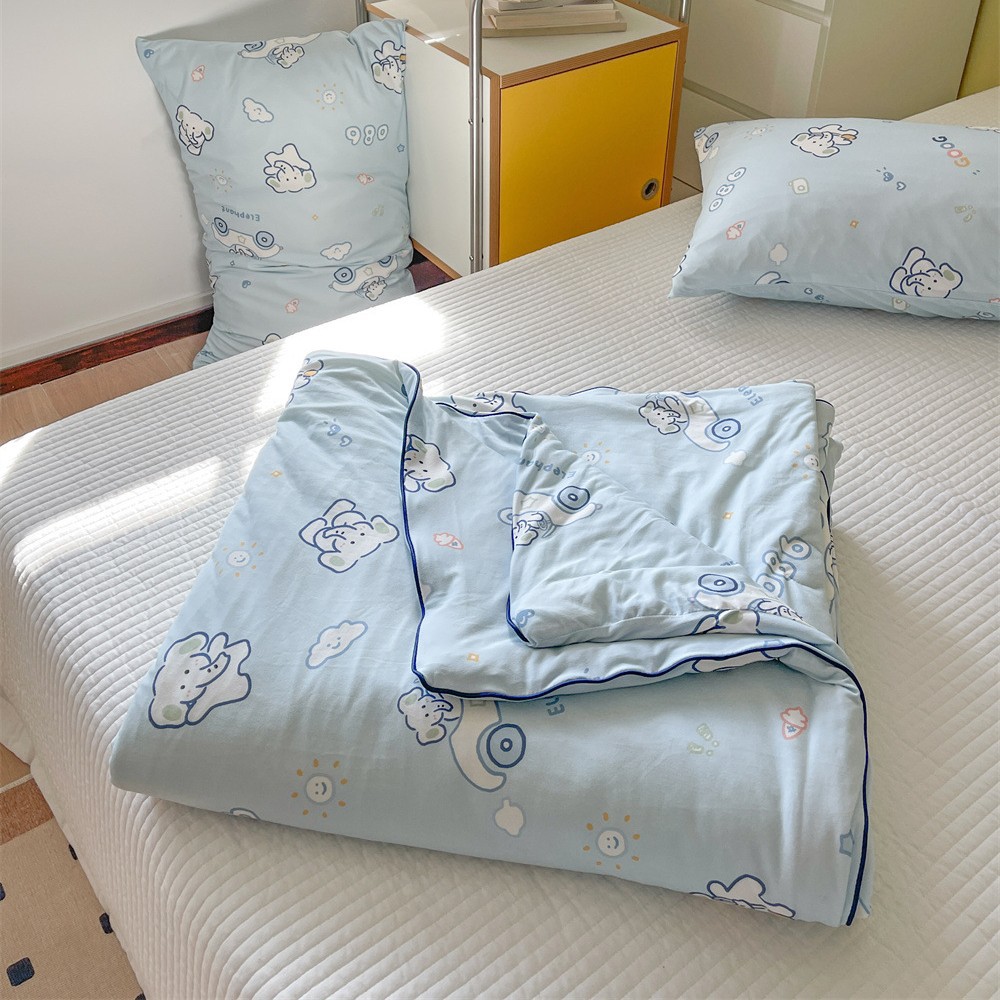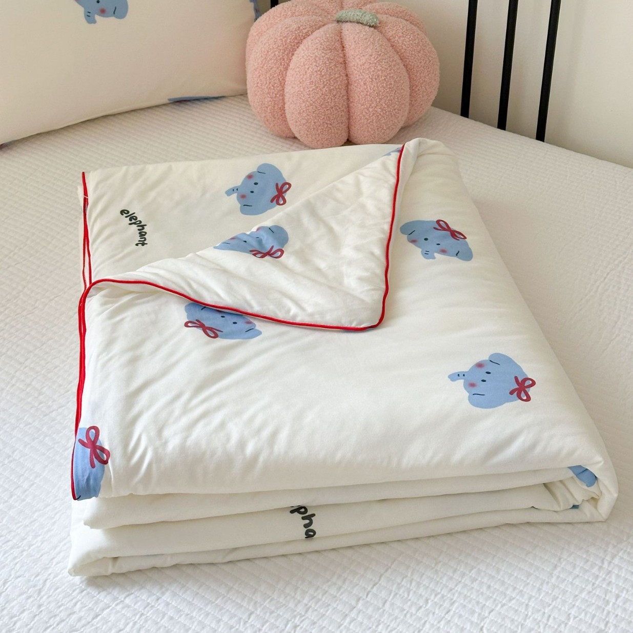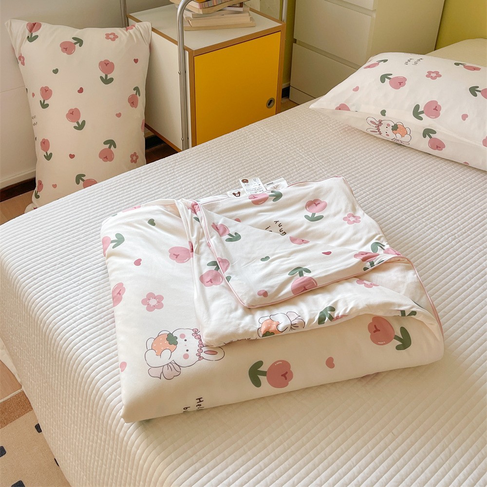 부드럽고 부드러운 데르 ~ 니트 클라우드 소프트 퀼트 작고 신선한 만화 프린팅 피부 친화적 소프트 누드 수면 여름 이불 에어컨 룸 얇은 이불스토어 가기