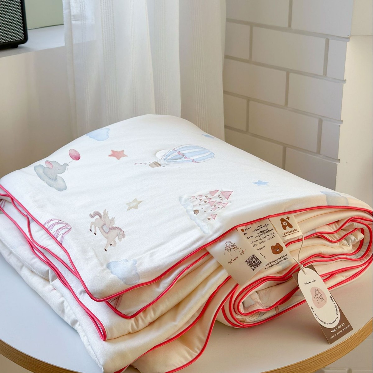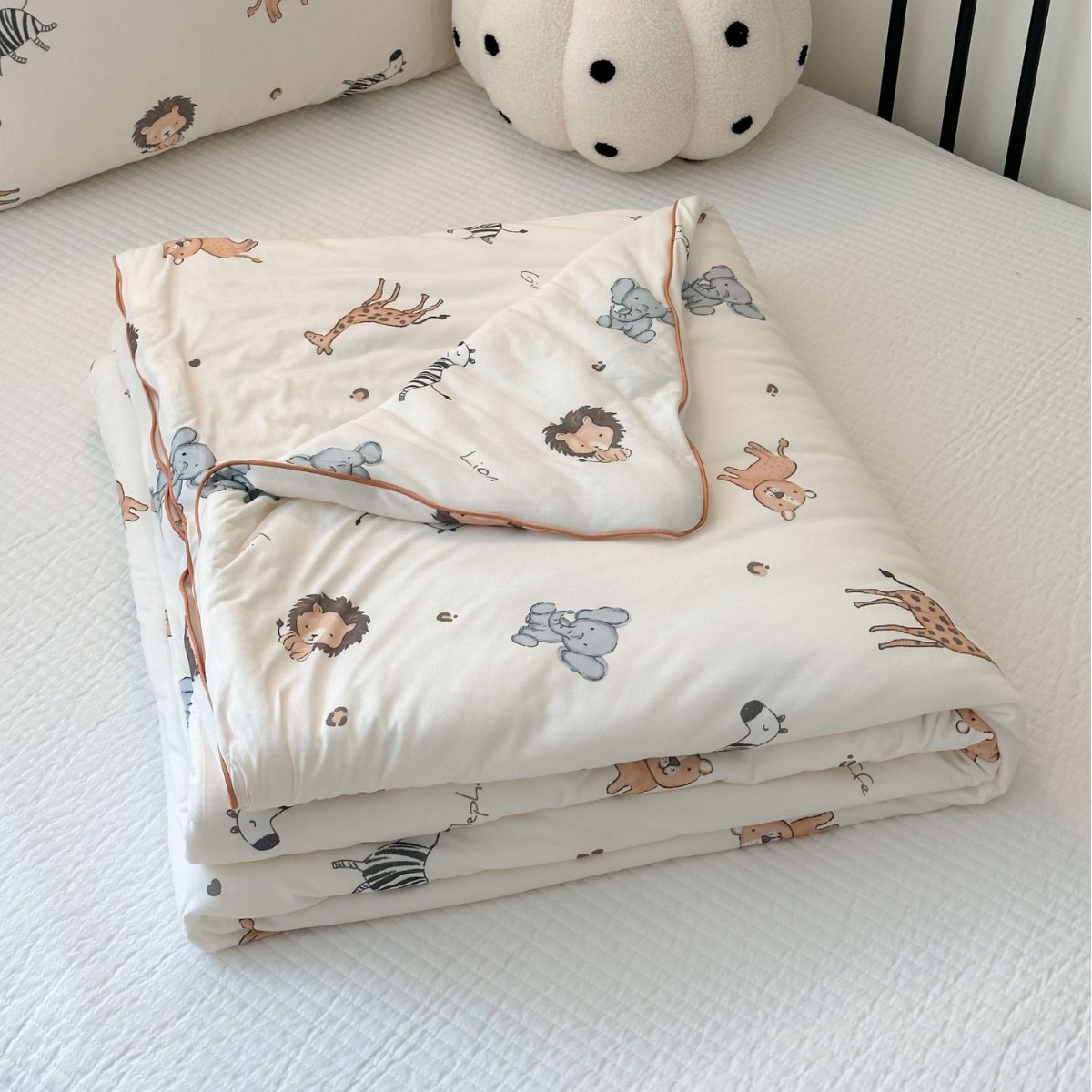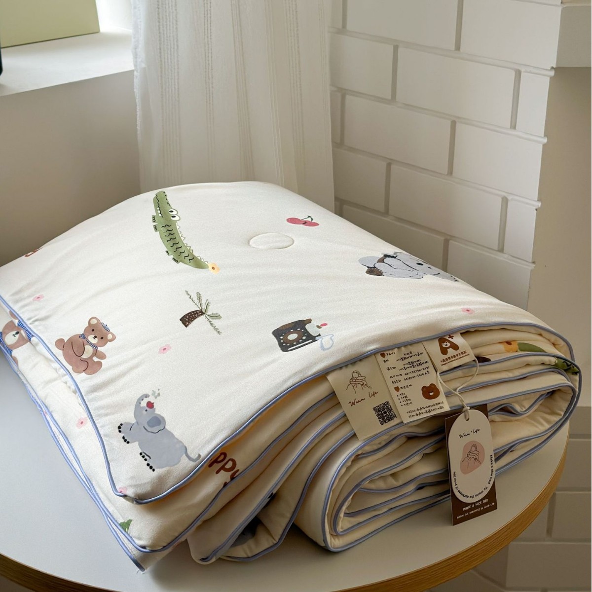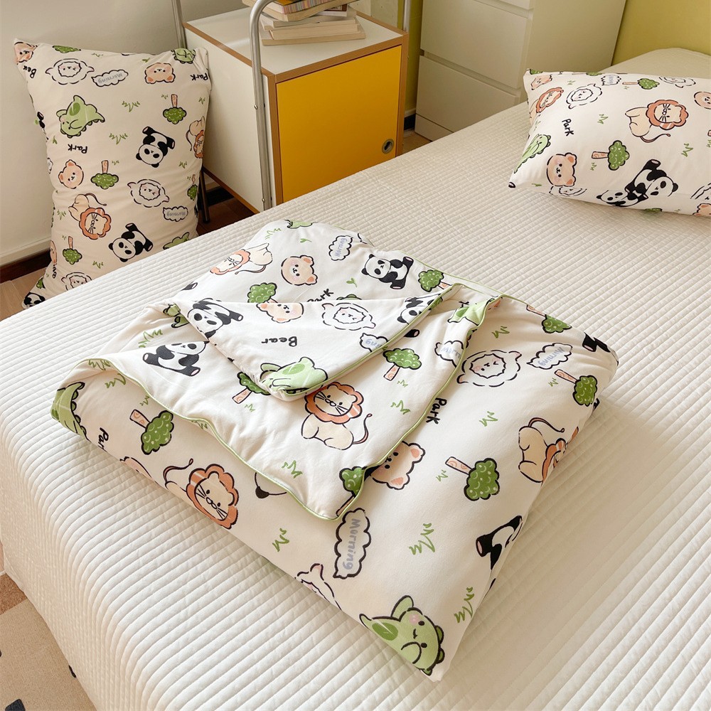 부드럽고 부드러운 데르 ~ 니트 클라우드 소프트 퀼트 작고 신선한 만화 프린팅 피부 친화적 소프트 누드 수면 여름 이불 에어컨 룸 얇은 이불스토어 가기