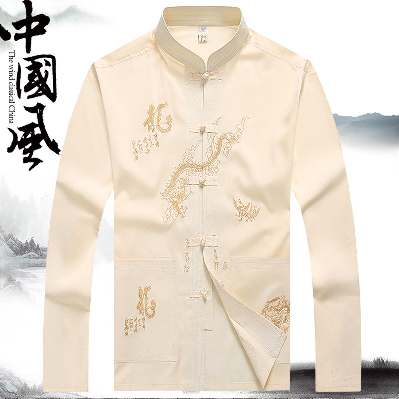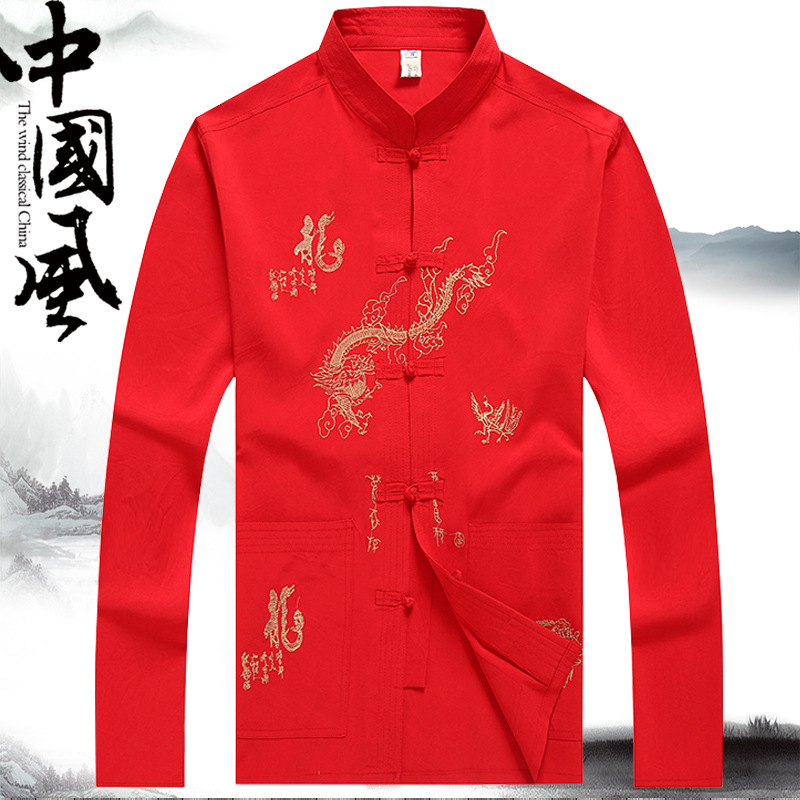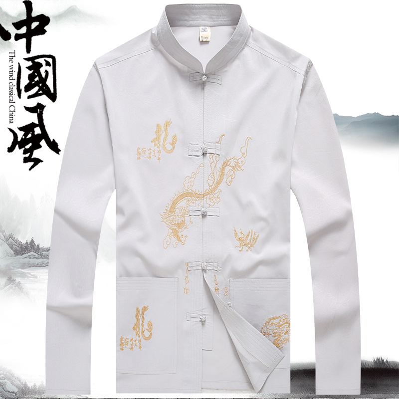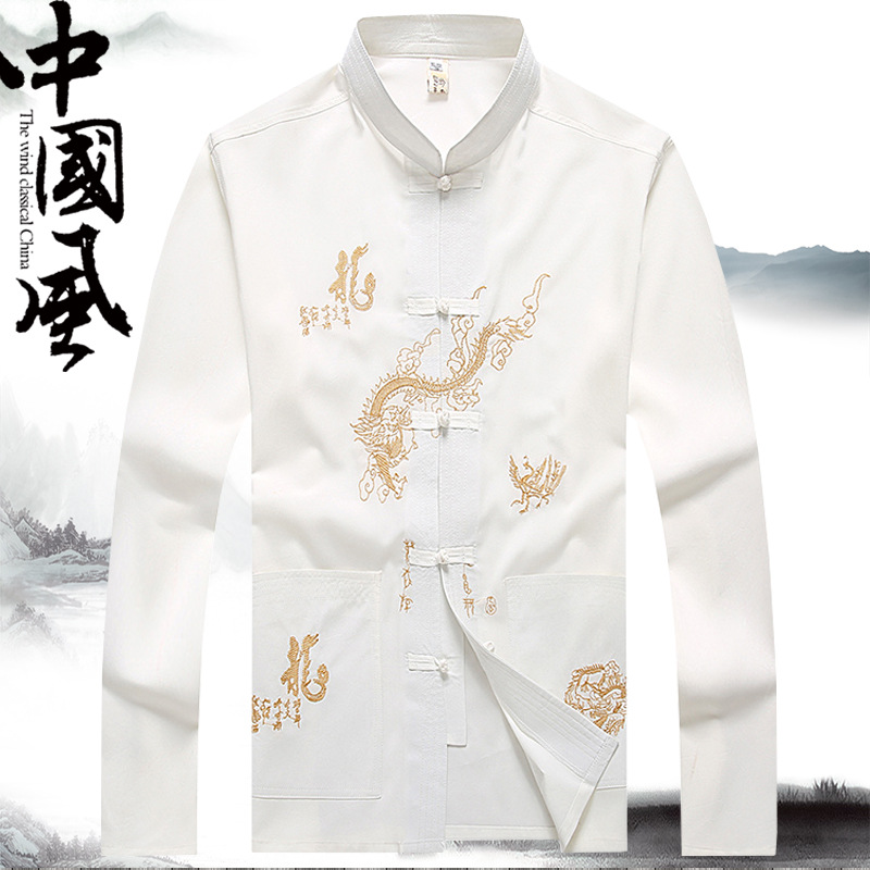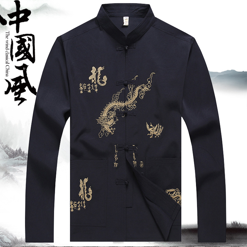 봄과 여름 중년 및 노인 남성 아빠 중국 스타일 티셔츠 할아버지 중국 플러스 사이즈 셔츠를위한 긴팔 탱 세트 탑스토어 가기