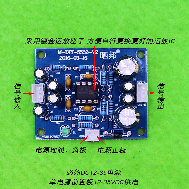 5532 프론트 앰프 보드 단일 전원 공급 장치 프론트 보드 DC 단일 전원 공급 장치 12-35v 교체 가능한 연산 증폭기 배선