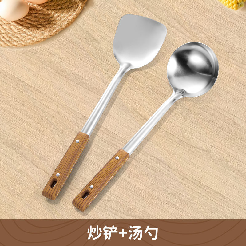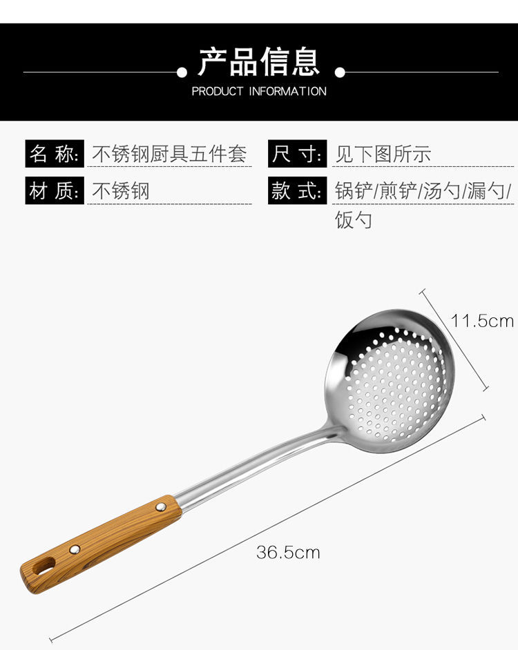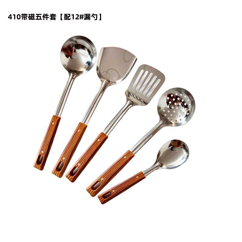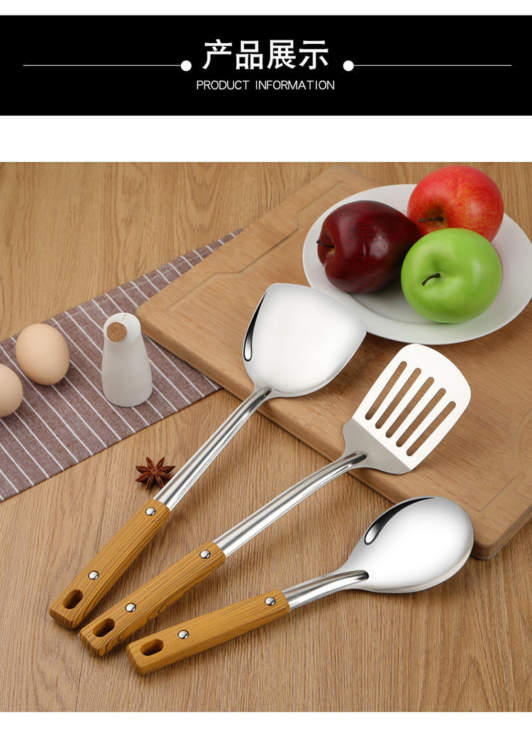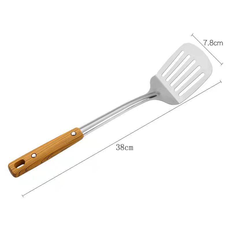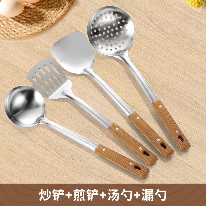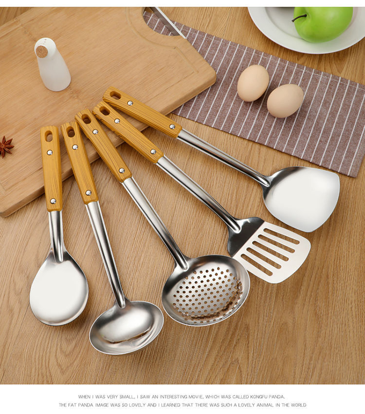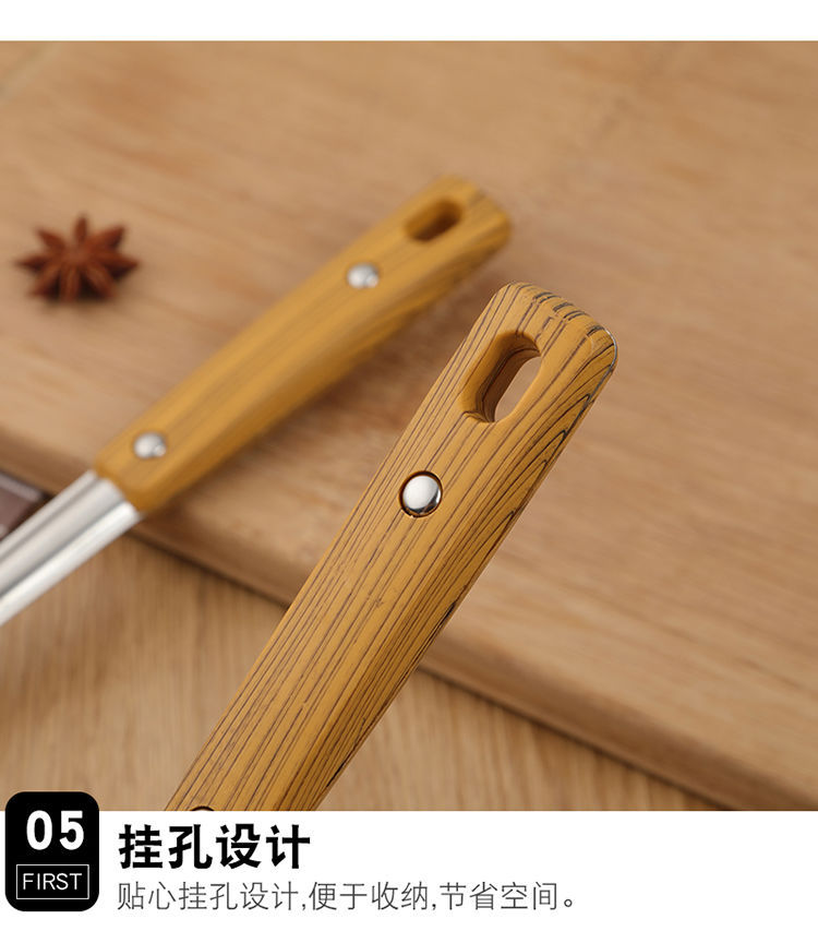 나뭇결 손잡이 스테인레스 냄비 주걱 수프 스푼 튀김 삽 소쿠리 단열 주방 용품 요리 세트