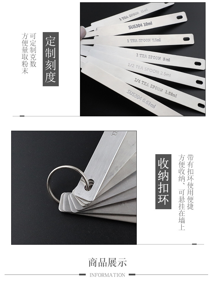 양강 공장에서 제공하는 5피스 세트 계량스푼 스테인리스 눈금 있는 베이킹용 커피 분유 계량스푼스토어 가기