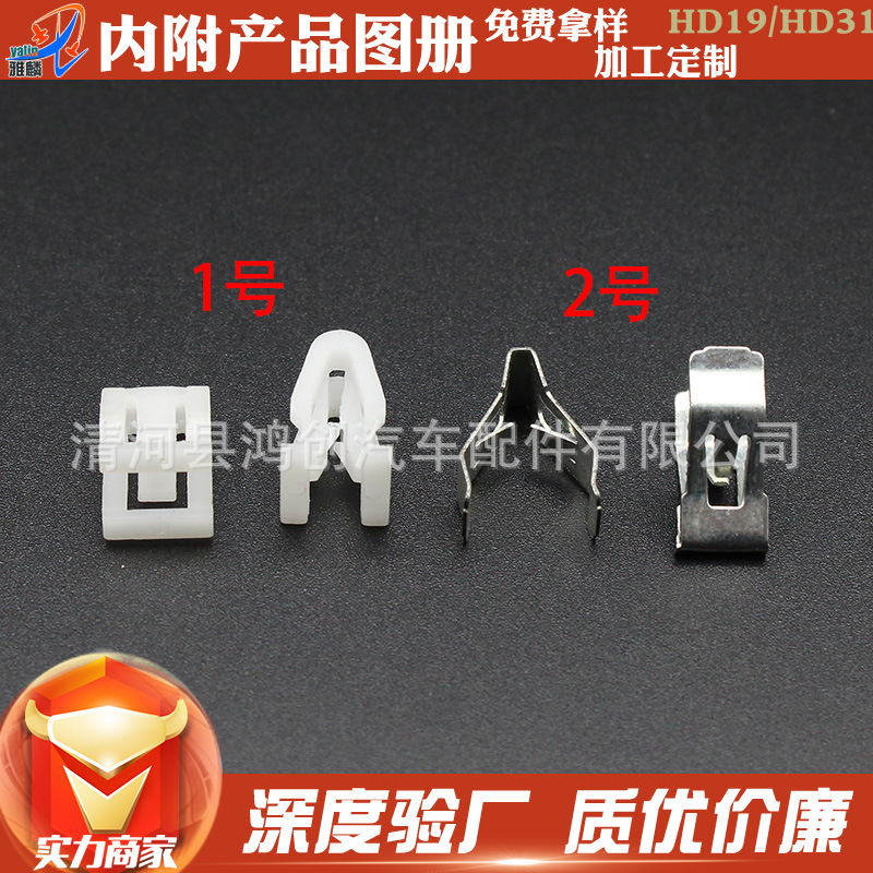 汽车位置用卡扣;汽车顶棚卡扣丰皮铆钉;内饰板卡扣;门饰板卡扣;护板卡扣;底边梁卡扣;座椅卡扣固定卡子;灯扣快丝座子贡螺丝;汽车锁扣;流水条卡扣;后备箱卡扣;叶子板内衬卡扣;机盖隔热板卡扣;隔热棉卡子;密封条卡扣;轮门卡扣;支撑杆卡扣;玻璃托卡扣;玻璃扣;脚垫卡扣;子母扣;双合扣;压条卡扣;保险杠卡扣(前杠 后杠);中网卡扣;机盖扣;穿芯钉;穿心钉;窗帘扣;地板扣;地毯扣;水管卡;油管卡;线卡;德式卡箍;美食喉箍;强力水管卡子;喷水嘴卡扣;压条钉;门提;门保险;开尾销钉;膨胀扣;膨胀螺丝;螺丝扣;膨胀螺丝扣;抽芯钉;胶墩;衬套;金属叶子板螺丝;铁片;螺钉;螺母;铁卡子