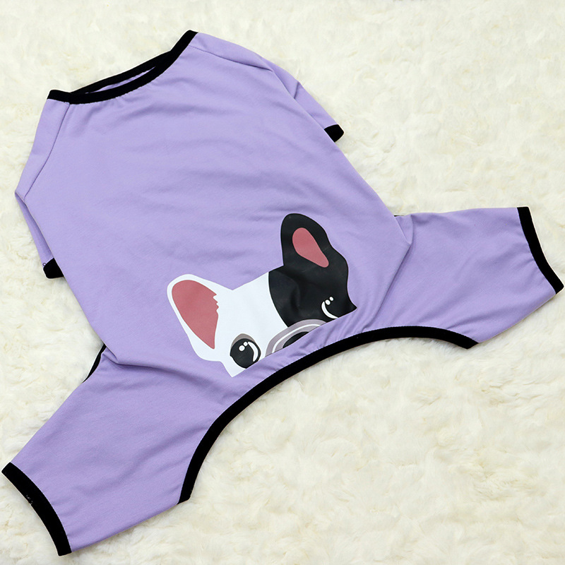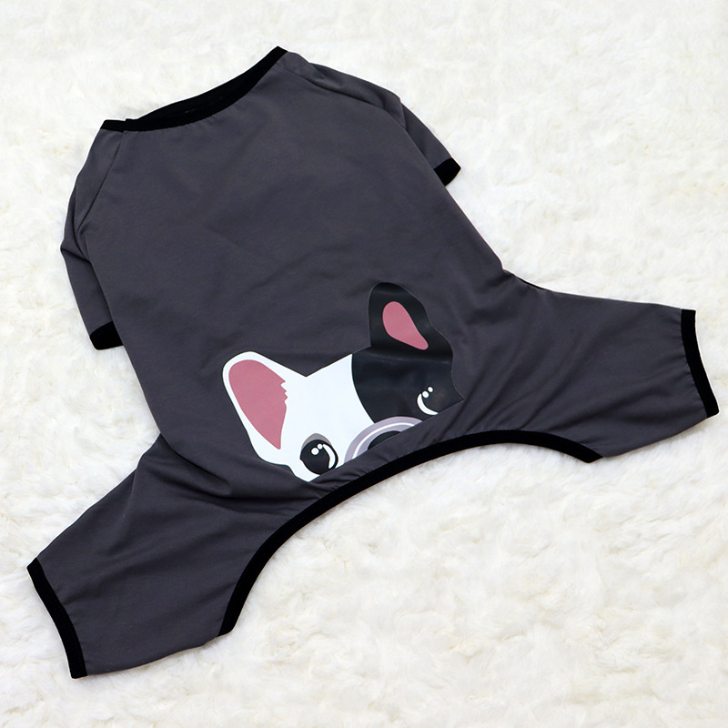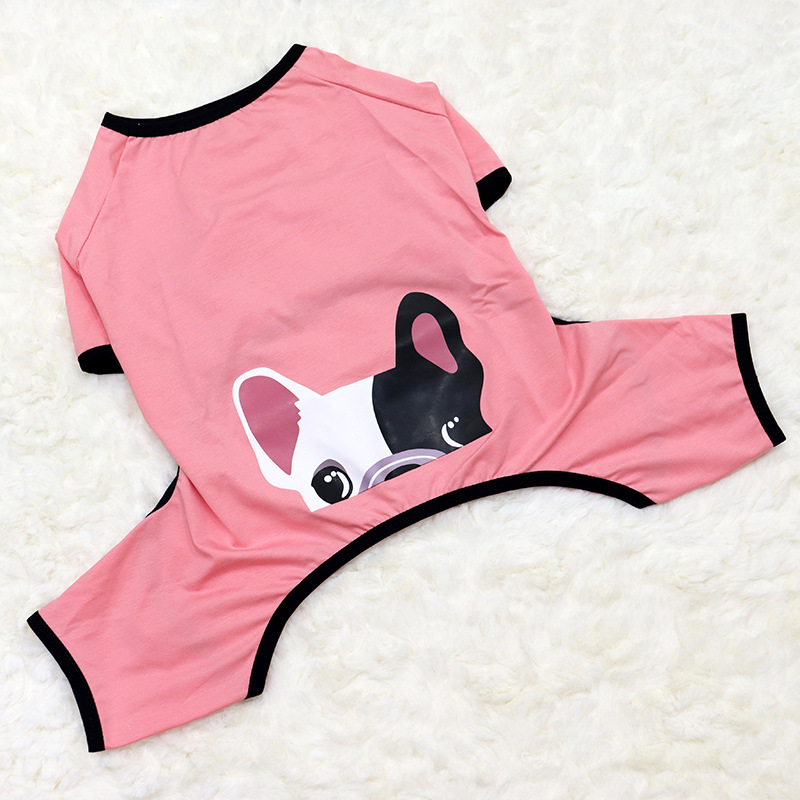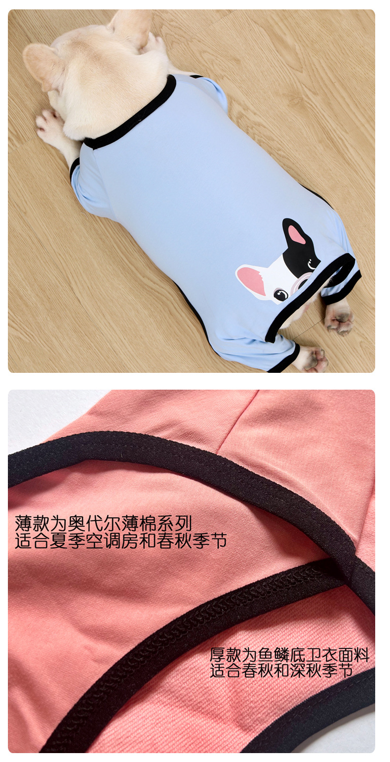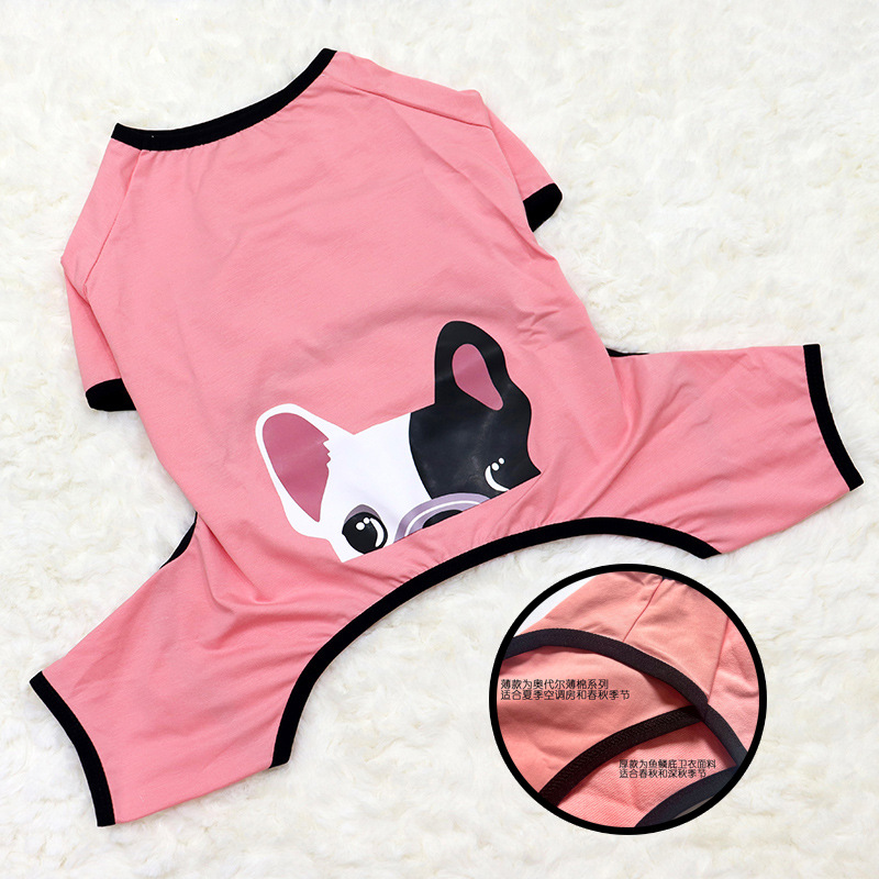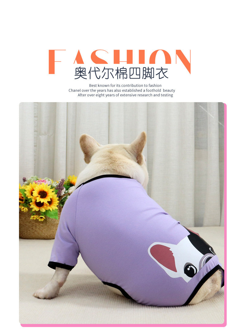 파두 옷 봄과 가을 뚱뚱한 개 4 족 면 프린트 잠옷 따뜻한 니트 탄성 한 세대 도매스토어 가기