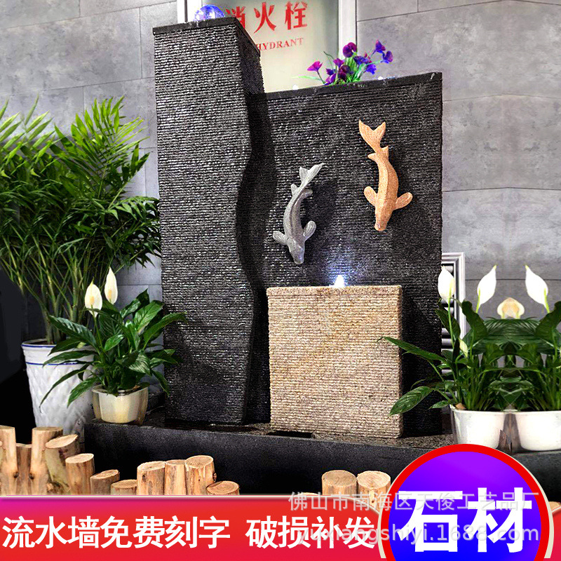창조적 인 흐르는 물 풍경 장식품 조경 물 커튼 분수 물고기 연못 돌 벽 베란다 장식 사무실 재물 모임 풍수스토어 가기