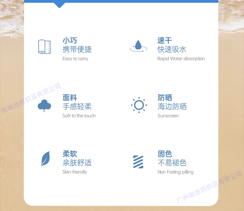 1.本厂所售沙滩巾采用超细纤维“双面绒”面料