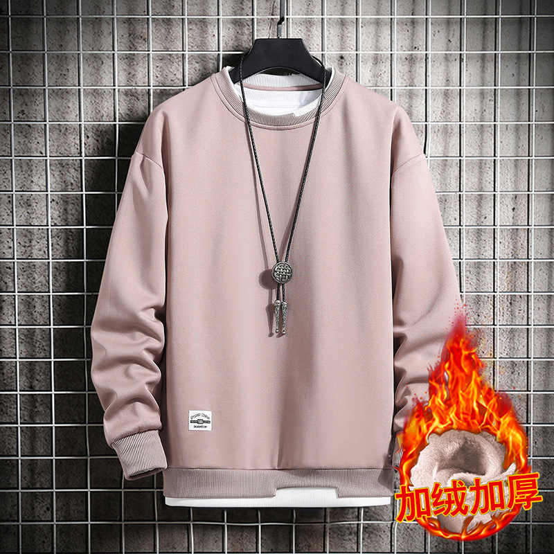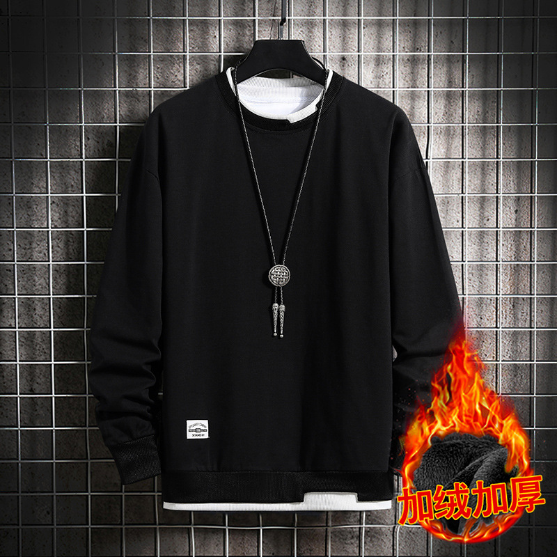 남성용 스웨트셔츠 2025 가을 겨울 기모 긴팔 티셔츠 남성 청소년 투피스 스타일 라운드넥 캐주얼 스웨트셔츠 상의스토어 가기
