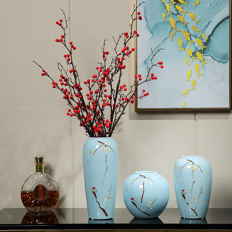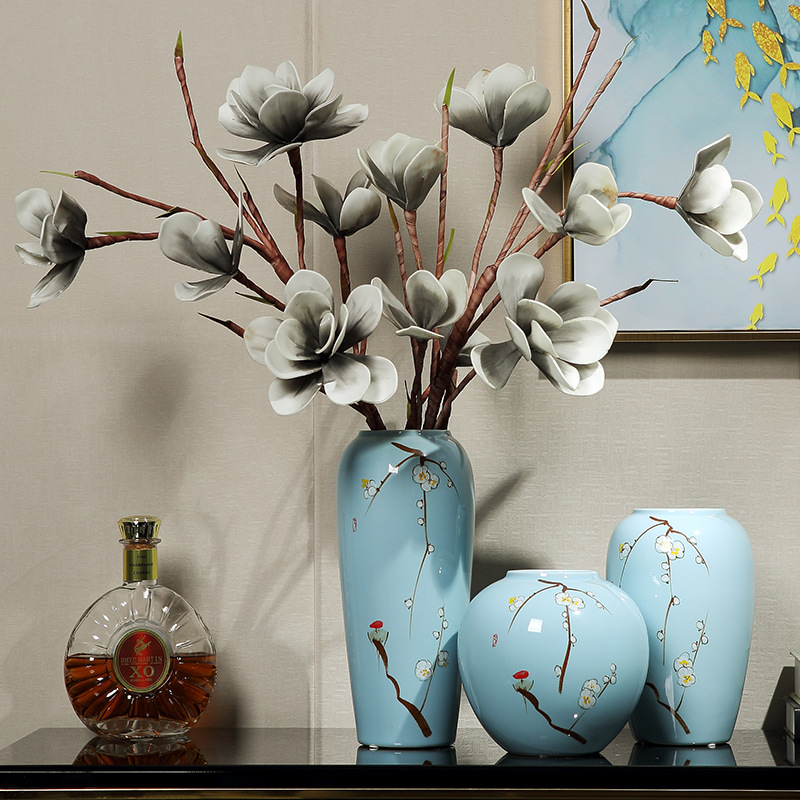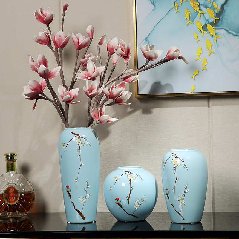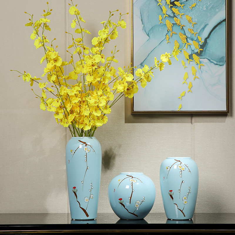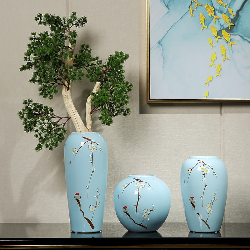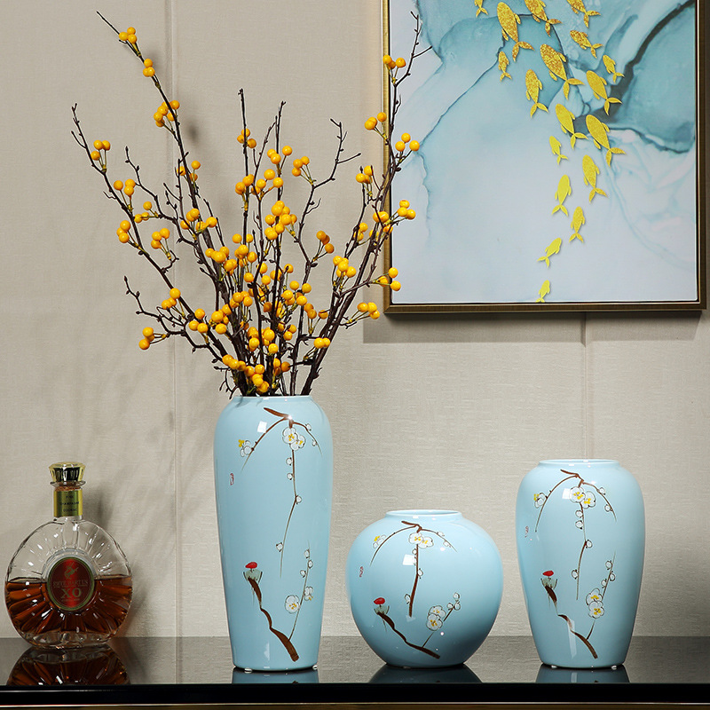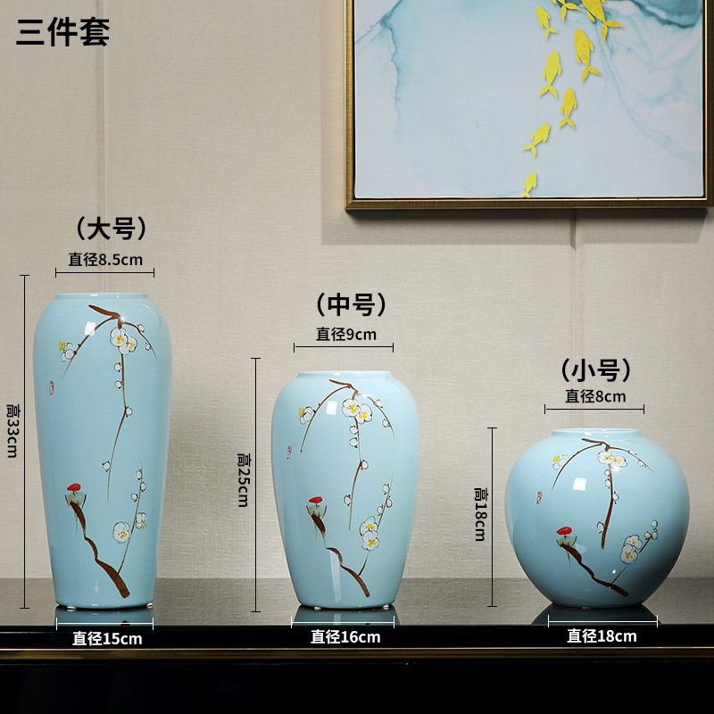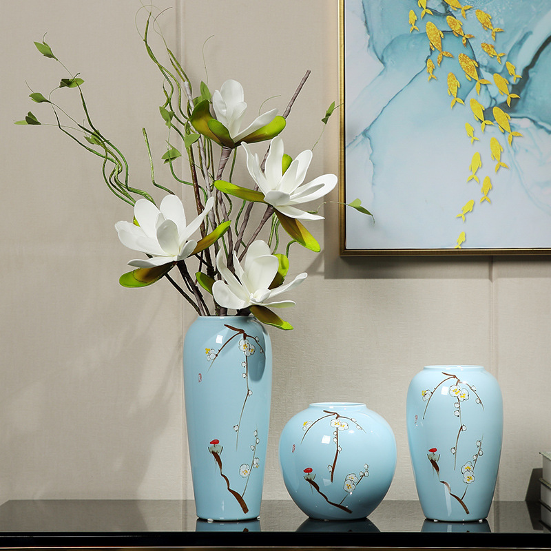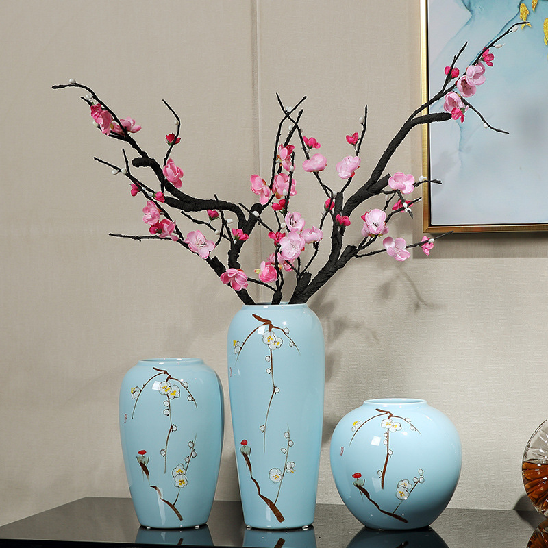 새로운 중국 스타일의 세라믹 꽃병 장식 거실 TV 간단한 현대 건조한 꽃-식탁 수경 장식을위한 장식