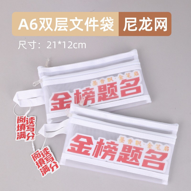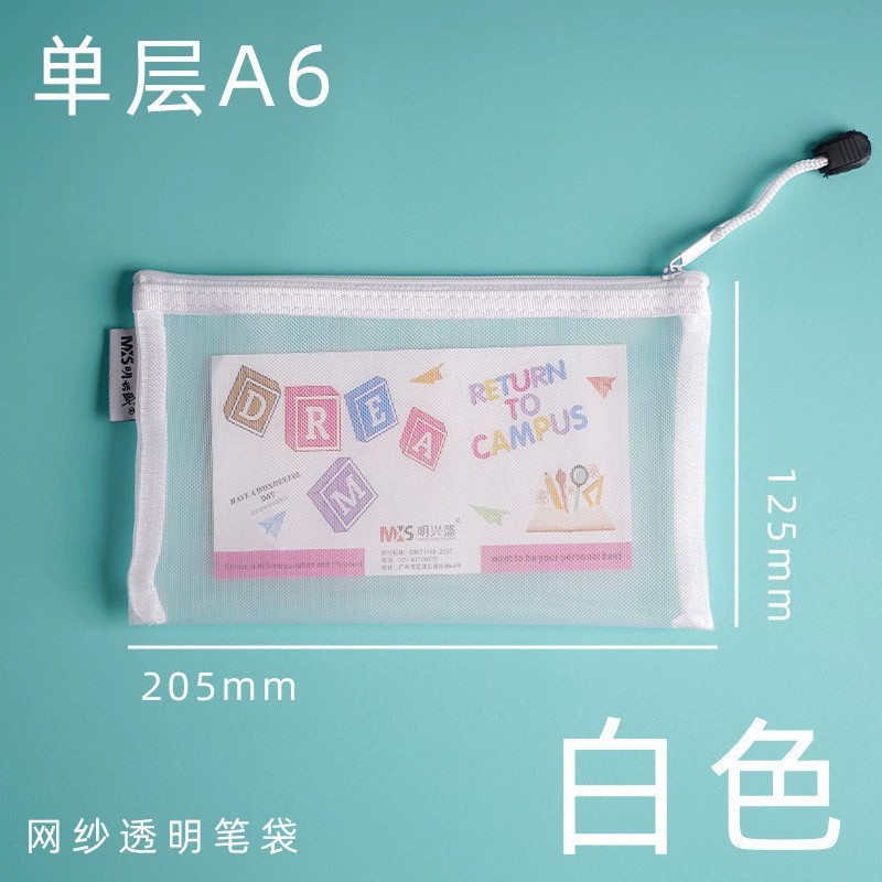 재고 무료 배송 A6 간단한 보관 가방 더블 레이어 문구 투명 연필 가방 나일론 학생 메쉬 연필 가방 도매