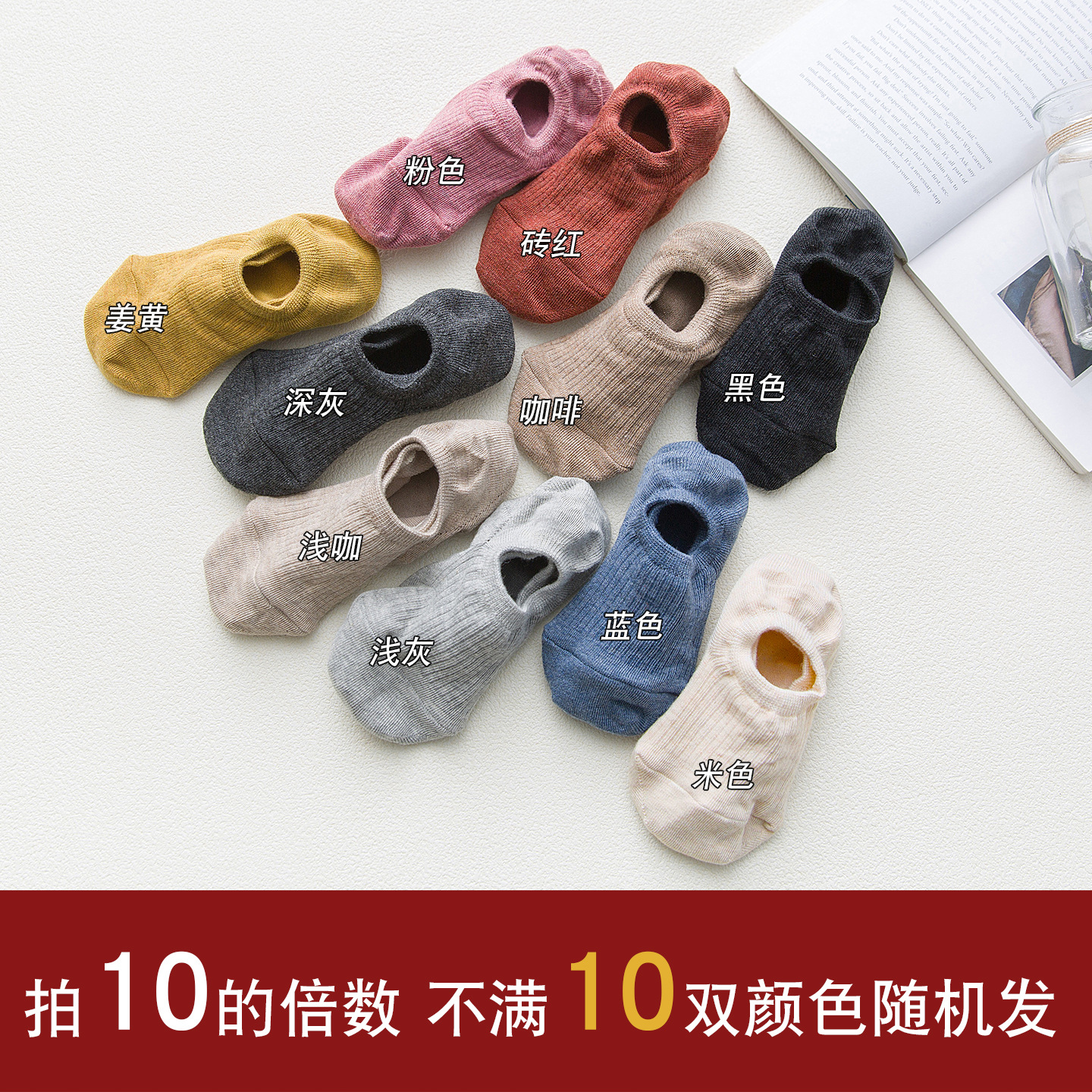 여성용 얇은 봄용 양말, 미끄럼 방지 보트삭스, 일본식 힙합방지 솔리드 컬러 면양말, 봄여름 히든삭스, 숏삭스