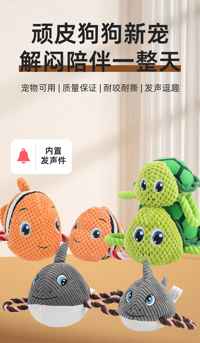 애완동물 장난감 해양 시리즈 면 로프 씹기 소리나는 인터랙티브 로프 매듭 용품 강아지 씹기 재미있는 소리스토어 가기